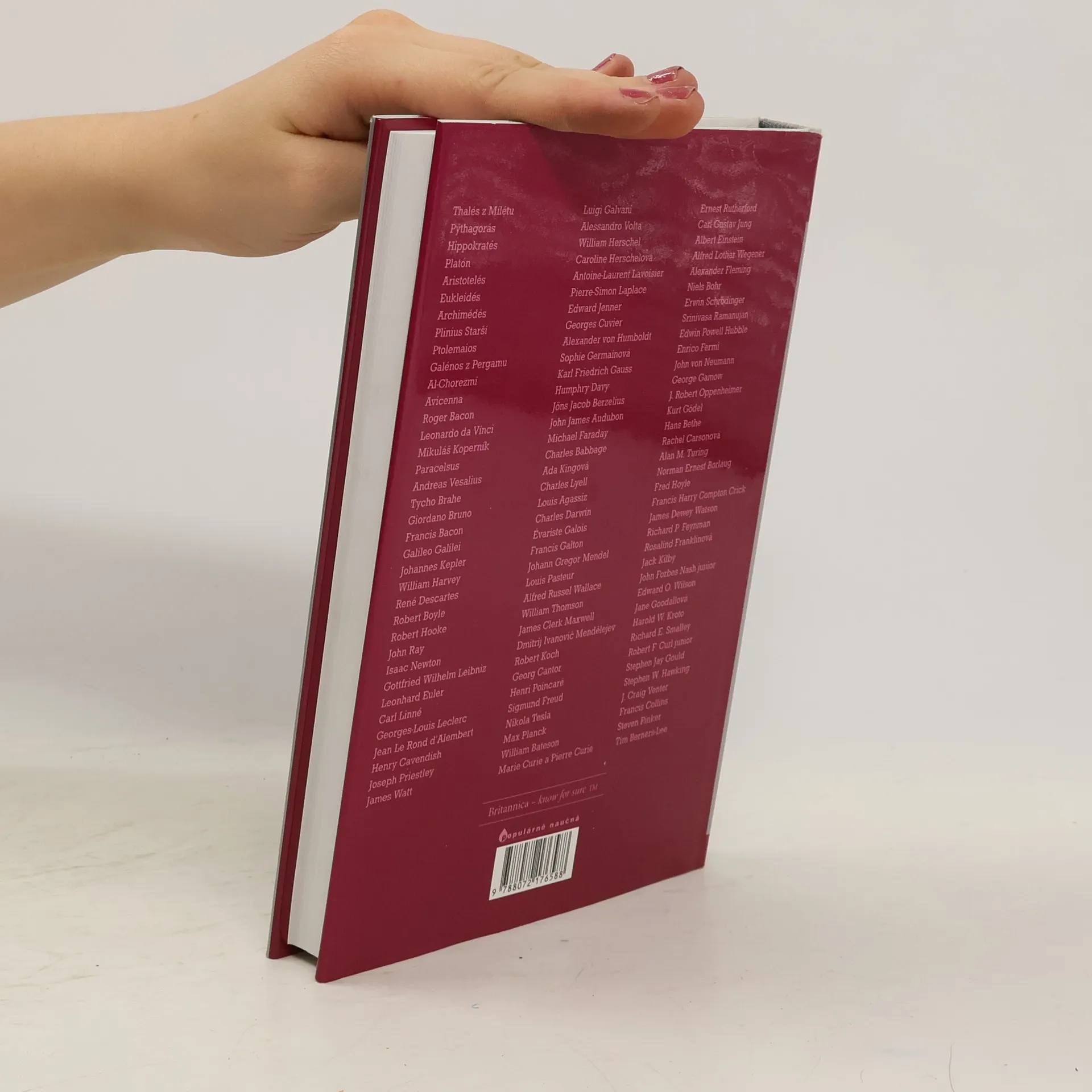 Kniha je součástí souboru průvodců Encyklopedie Britanniky a poskytuje náhled do života a díla vědců od starověkého Řecka po současnost. Předkládá základní a zásadní informace o stvoce vybraných filozofů a badatelů všech dob počínaje kosmologem Thaletem z Milétu ( asi 624 až 546 př. Kr. ) a konče sirem Timem Berners-Leem ( 1955 ), který je považován za zakladatele soustavy propojených hypertextových dokumentů zvané World Wide Web. Je psána jasným, přesným a čtivým jazykem a informuje čtenáře o životopisných datech vědců, historickém a vědeckém kontextu doby, o jejich základních dílech a významu těchto děl pro budoucnost. Kniha je určena pro čtenáře každého věku, kteří chtějí získat nebo si zopakovat základní informace z historie světové vědy. Předmluvu napsal John Gribbin, autor mnoha desítek populárně vědeckých knih. Nejvýznamnější osobnosti vědy od starověkého Řecka po současnost