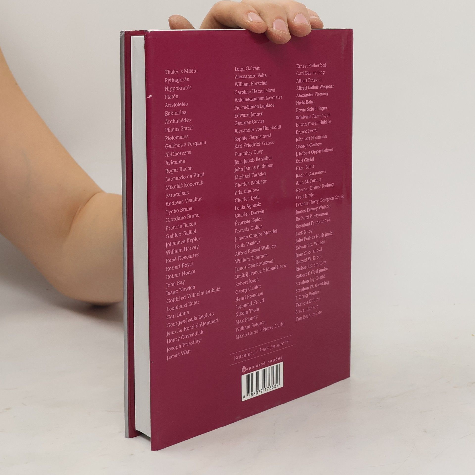 Kniha je součástí souboru průvodců Encyklopedie Britanniky a poskytuje náhled do života a díla vědců od starověkého Řecka po současnost. Předkládá základní a zásadní informace o stvoce vybraných filozofů a badatelů všech dob počínaje kosmologem Thaletem z Milétu ( asi 624 až 546 př. Kr. ) a konče sirem Timem Berners-Leem ( 1955 ), který je považován za zakladatele soustavy propojených hypertextových dokumentů zvané World Wide Web. Je psána jasným, přesným a čtivým jazykem a informuje čtenáře o životopisných datech vědců, historickém a vědeckém kontextu doby, o jejich základních dílech a významu těchto děl pro budoucnost. Kniha je určena pro čtenáře každého věku, kteří chtějí získat nebo si zopakovat základní informace z historie světové vědy. Předmluvu napsal John Gribbin, autor mnoha desítek populárně vědeckých knih. Nejvýznamnější osobnosti vědy od starověkého Řecka po současnost