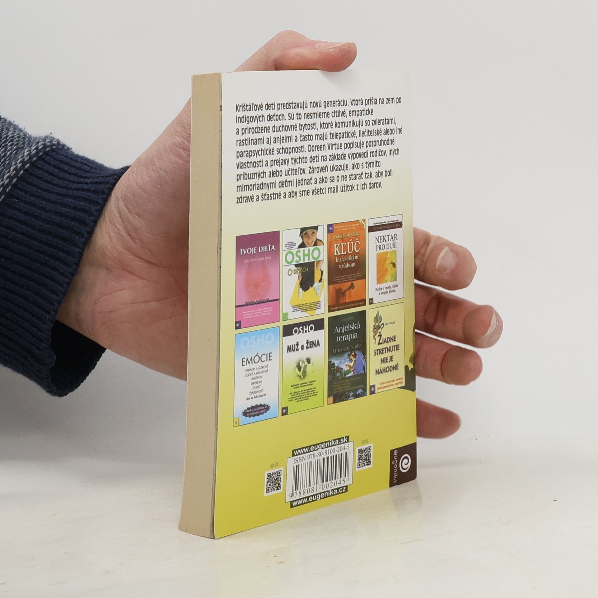 Krištáľové deti predstavujú novú generáciu, ktorá prišla na zem po indigových deťoch. Sú to nesmierne citlivé, empatické a prirodzene duchovné bytosti, ktoré komunikujú so zvieratami, rastlinami aj anjelmi a často majú telepatické, liečiteľské alebo iné parapsychické schopnosti. Doreen Virtue popisuje pozoruhodné vlastnosti a prejavy týchto detí na základe výpovedí rodičov, iných príbuzných alebo učiteľov. Zároveň ukazuje, ako s týmito mimoriadnymi deťmi jednať a ako sa o ne starať tak, aby boli zdravé a šťastné a aby sme všetci mali úžitok z ich darov.