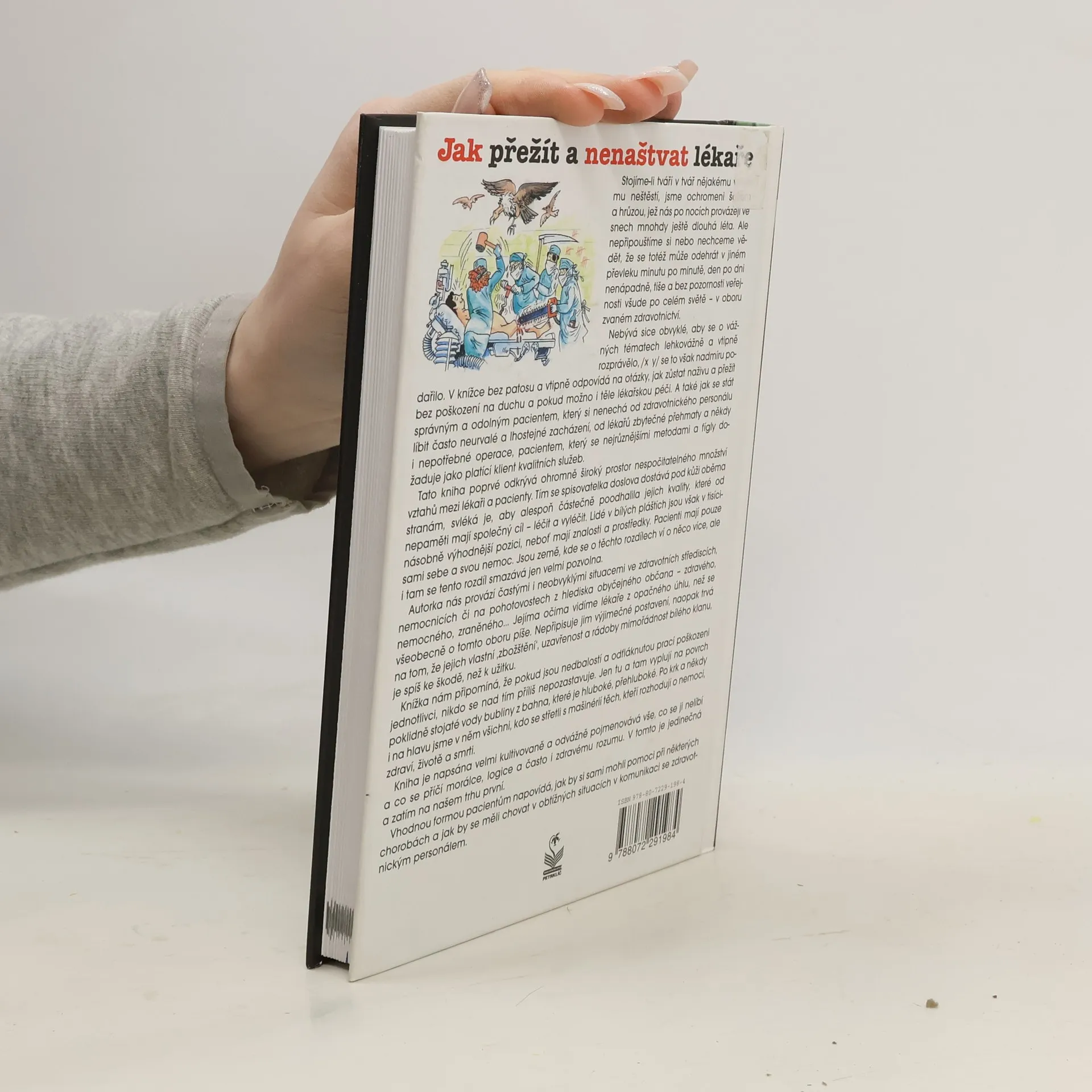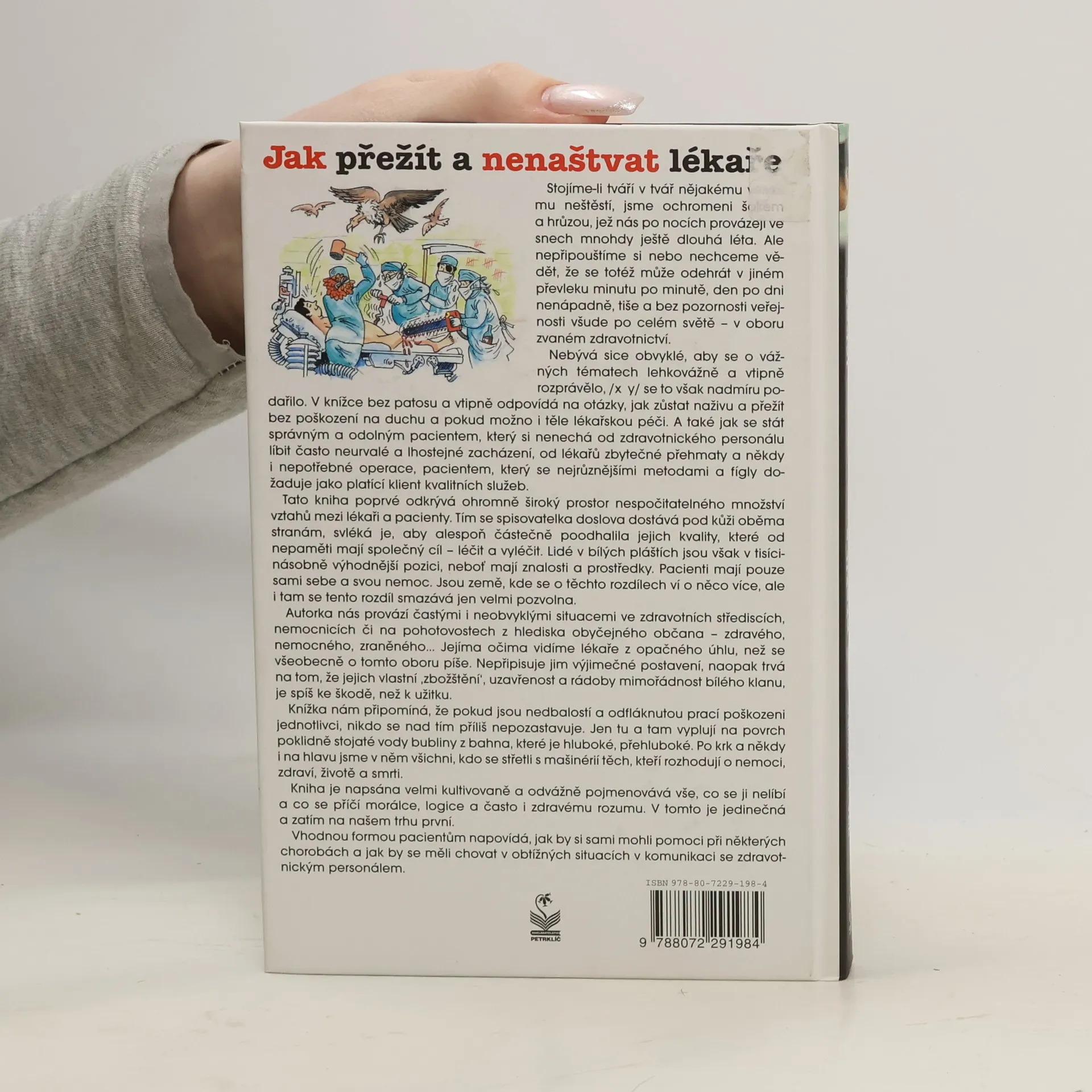 Když čelíme velkému neštěstí, často nás ovládne šok a hrůza, které nás pronásledují dlouhá léta. Méně si však uvědomujeme, že podobné situace se odehrávají tiše a nenápadně v oblasti zdravotnictví. Autorka se v knize s vtipem a bez patosu zaměřuje na to, jak přežít lékařskou péči bez psychického i fyzického poškození a jak se stát odolným pacientem. Učí nás, jak si nenechat líbit neohleduplné zacházení zdravotnického personálu a jak se jako platící klient dožadovat kvalitních služeb. Kniha odhaluje široký prostor vztahů mezi lékaři a pacienty a ukazuje, že lékaři mají výhodu v podobě znalostí a prostředků, zatímco pacienti mají pouze sebe a svou nemoc. Autorka nás provází různými situacemi ve zdravotnických zařízeních a nabízí pohled na lékaře z jiného úhlu, než je běžné. Kritizuje jejich uzavřenost a "zbožštění", které spíše škodí než prospívá. Kniha upozorňuje na nedbalost a nezodpovědnost, které mohou mít vážné následky pro jednotlivce. Je napsána kultivovaně a odvážně, přičemž nabízí praktické rady, jak se pacienti mohou lépe orientovat v obtížných situacích a komunikaci se zdravotnickým personálem.