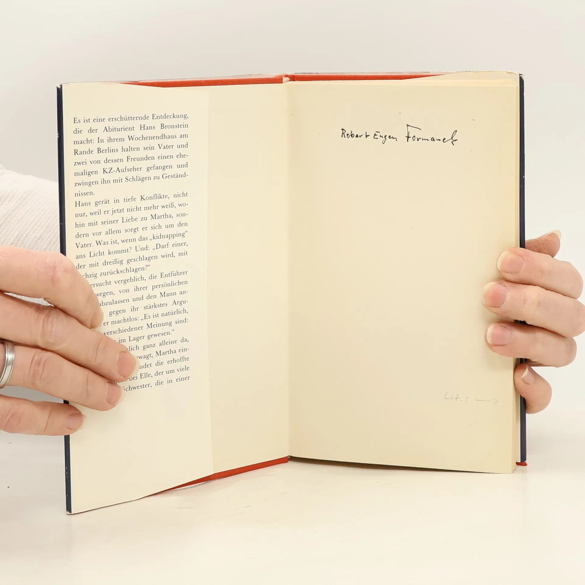 Damals, 1973, lebte Hans zusammen mit seinem Vater. Mit Martha, der Frau, die er liebte, fuhr er häufig zu dem Häuschen des Vaters vor der Stadt. Eines Tages fand Hans das Haus besetzt. Dies war der Beginn einer Geschichte, die sein Leben veränderte: In dem Haus wurde ein Mann gefangengehalten. Der Vater und zwei seiner Freunde hatten herausgefunden, daß er Lageraufseher während des Krieges war. Nun verhörten sie ihn, schlugen ihn. Sie, die Überlebenden, glaubten eine Legitimation für ihr Handeln zu besitzen, wie sie nur Opfern zusteht. Hans ist zum Mitwisser geworden, und der Vater hielt ihn, weil er das Vorgehen mißbilligte, für einen Feind. Jetzt, ein Jahr später, lebt der Vater nicht mehr. Hans wohnt inzwischen bei Martha, aber die Liebe ist erloschen. Er will nicht bleiben und weiß nicht, wohin. Um die Geschichte vom vergangenen Jahr, von der Entführung des Aufsehers und vom Tod seines Vaters, vergessen zu können, erzählt er sie.