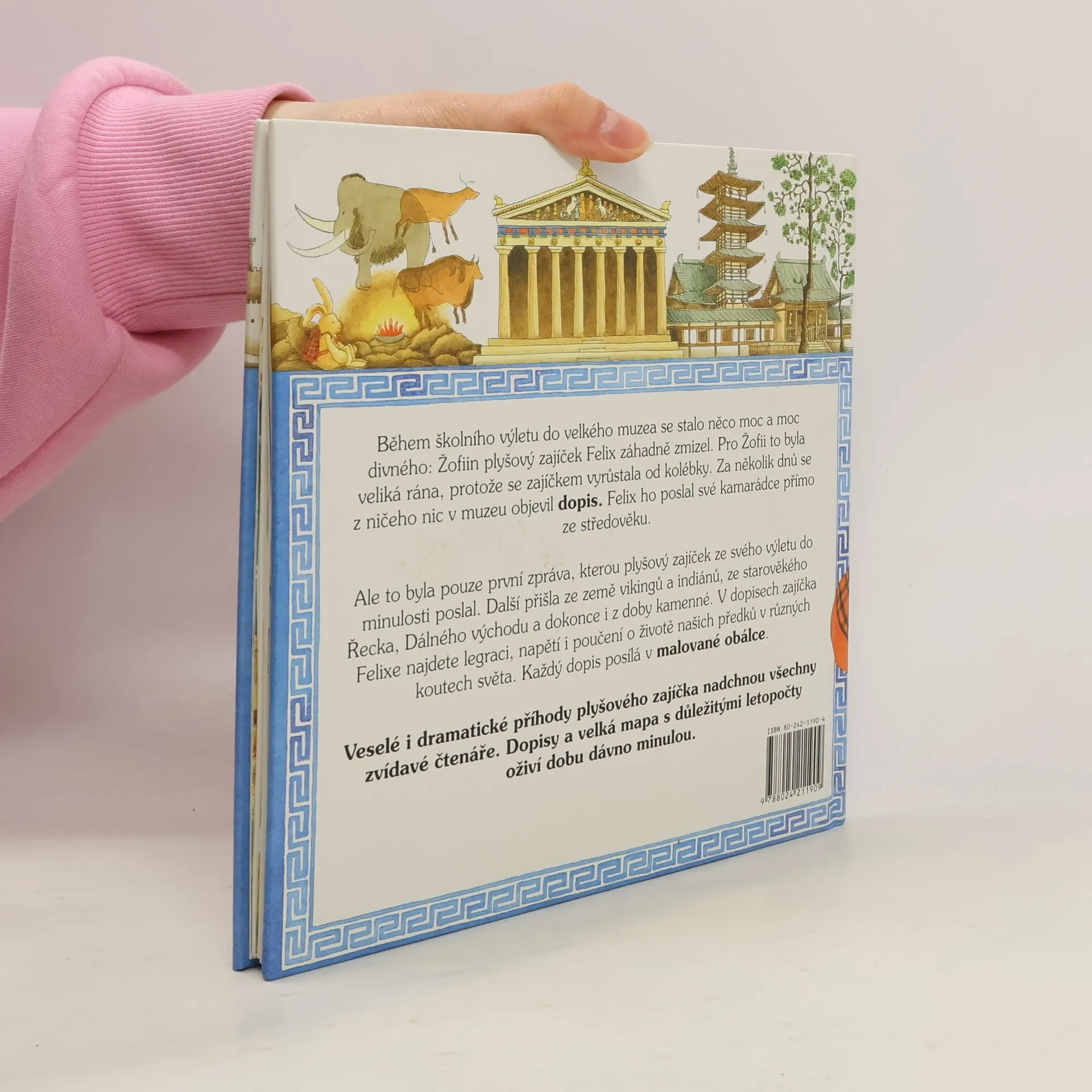 Během školního výletu do velkého muzea se stalo něco moc a moc divného: Žofiin plyšový zajíček Felix záhadně zmizel. Pro Žofii to byla veliká rána, protože se zajíčkem vyrůstala od kolébky. Za několik dnů se z ničeho nic v muzeu objevil dopis. Felix ho poslal své kamarádce přímo ze středověku. Ale to byla pouze první zpráva, kterou plyšový zajíček ze svého výletu do minulosti poslal. Další přišla ze země vikingů a indiánů, ze starověkého Řecka, Dálného východu a dokonce i z doby kamenné. V dopisech zajíčka Felixe najdete legraci, napětí i poučení o životě našich předků v různých koutech světa. Každý dopis posílá v malované obálce. Veselé i dramatické příhody plyšového zajíčka nadchnou všechny zvídavé čtenáře. Dopisy a velká mapa s důležitými letopočty oživí dobu dávno minulou.