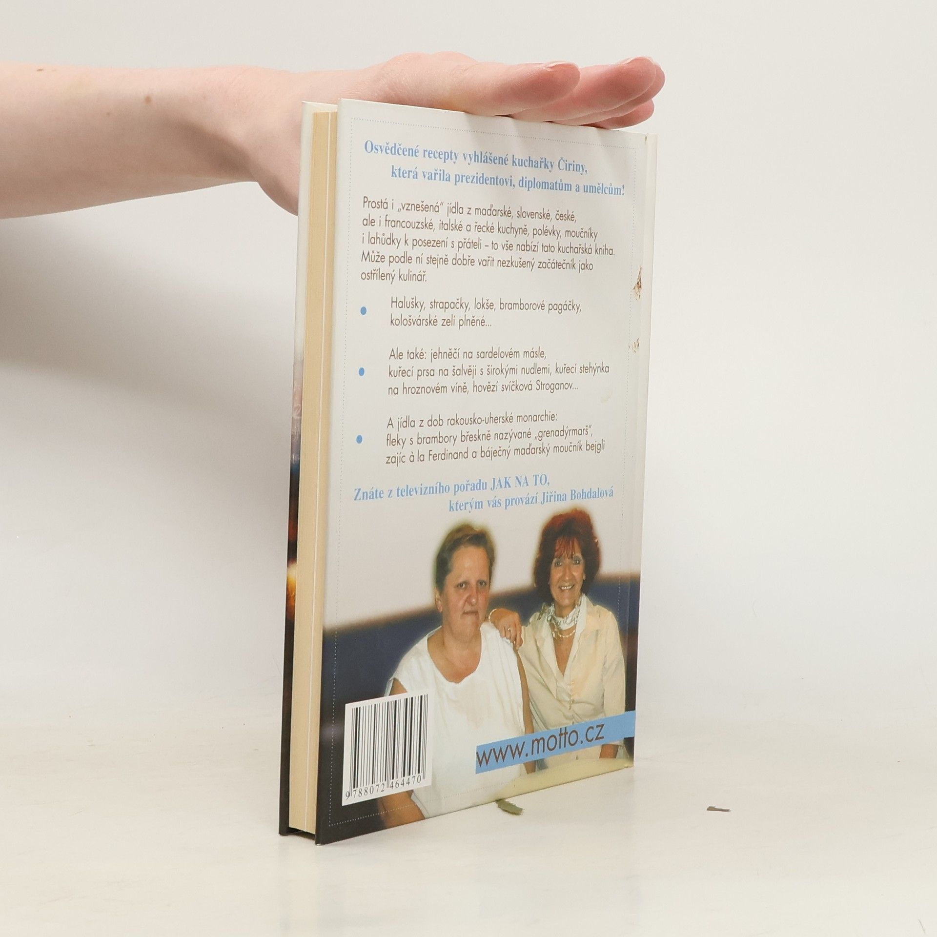 Prostá i "vznešená" jídla, polévky, moučníky i lahůdky k posezení s přáteli - to vše nabízí kniha skutečné mistryně kuchyně Čiriny, která vařila prezidentovi, diplomatům a umělcům. Může podle ní stejně dobře vařit nezkušený začátečník jako ostřílený kulinář. Osvědčené recepty vyhlášené kuchařky Čiriny