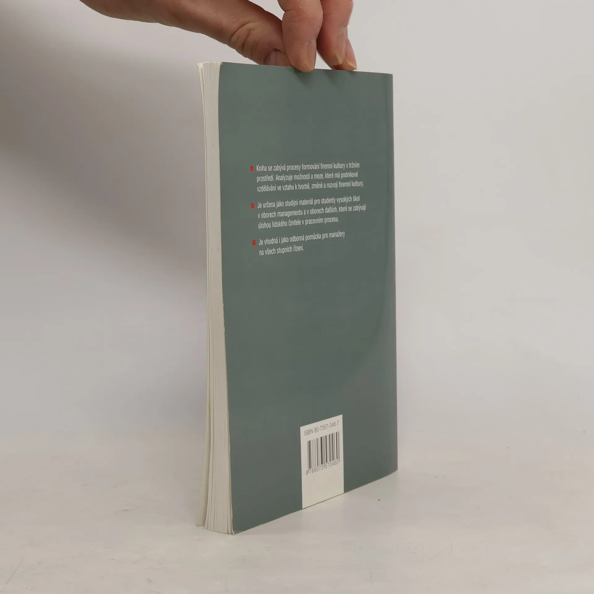 Kniha se zabývá procesy formování firemní kultury v tržním prostředí. Analyzuje možnosti a meze, které má podnikové vzdělávání ve vztahu k tvorbě, změně a rozvoji firemní kultury. Je určena jako studijní materiál pro studenty vysokých škol v oborech managementu a v oborech dalších, které se zabývají úlohou lidského činitele v pracovním procesu. Vhodná odborná pomůcka pro manažery na všech stupních řízení.