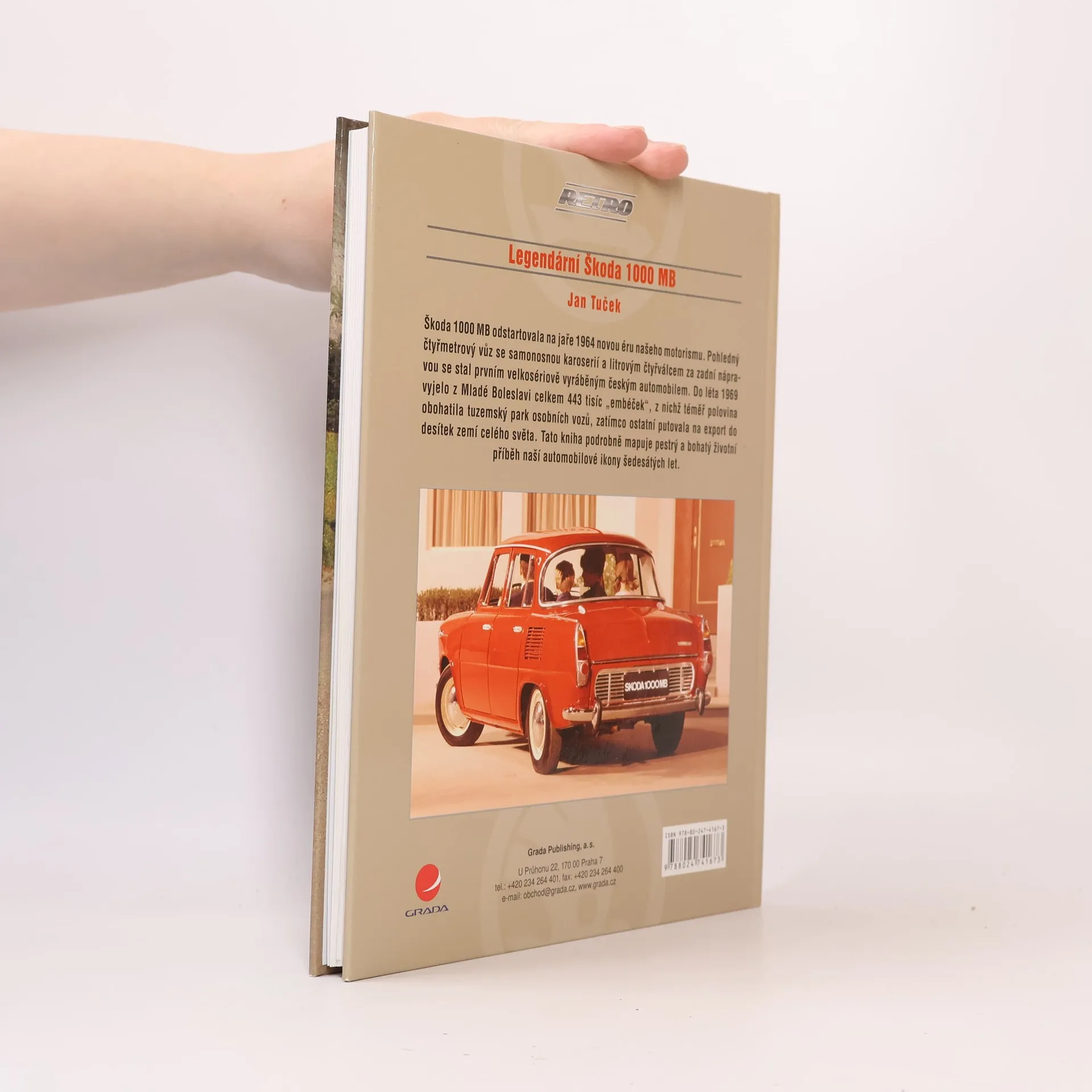 Škoda 1000 MB odstartovala na jaře 1964 novou éru československého motorismu. Pohledný čtyřmetrový vůz se samonosnou karoserií a litrovým čtyřválcem za zadní nápravou se stal prvním velkosériově vyráběným českým automobilem. Do léta 1969 vyjelo z Mladé Boleslavi celkem 443 000 "embéček", z nichž téměř polovina obohatila tuzemský park osobních vozů, zatímco ostatní putovala na export do desítek zemí celého světa. Stručná rekapitulace poválečných předchůdců Š 1000 MB z let 1946 až 1964, umožňuje zařadit "embéčko" do příslušného kontextu v historické linii značky. Spolu s automobilem z roku 1964 se krátce představí tehdy nový výrobní závod AZNP v Mladé Boleslavi, v té době nejmodernější automobilka v zemích za "železnou oponou" a jeden z nejlepších závodů svého druhu v Evropě. Na velkém množství unikátních fotografií kniha představuje prototypy i sériové "tisícovky". Kniha poskytuje kvalitní a ověřené informace o technických parametrech, zajímavostech z výroby, počtech vyráběných i exportovaných kusů i sportovních úspěších.