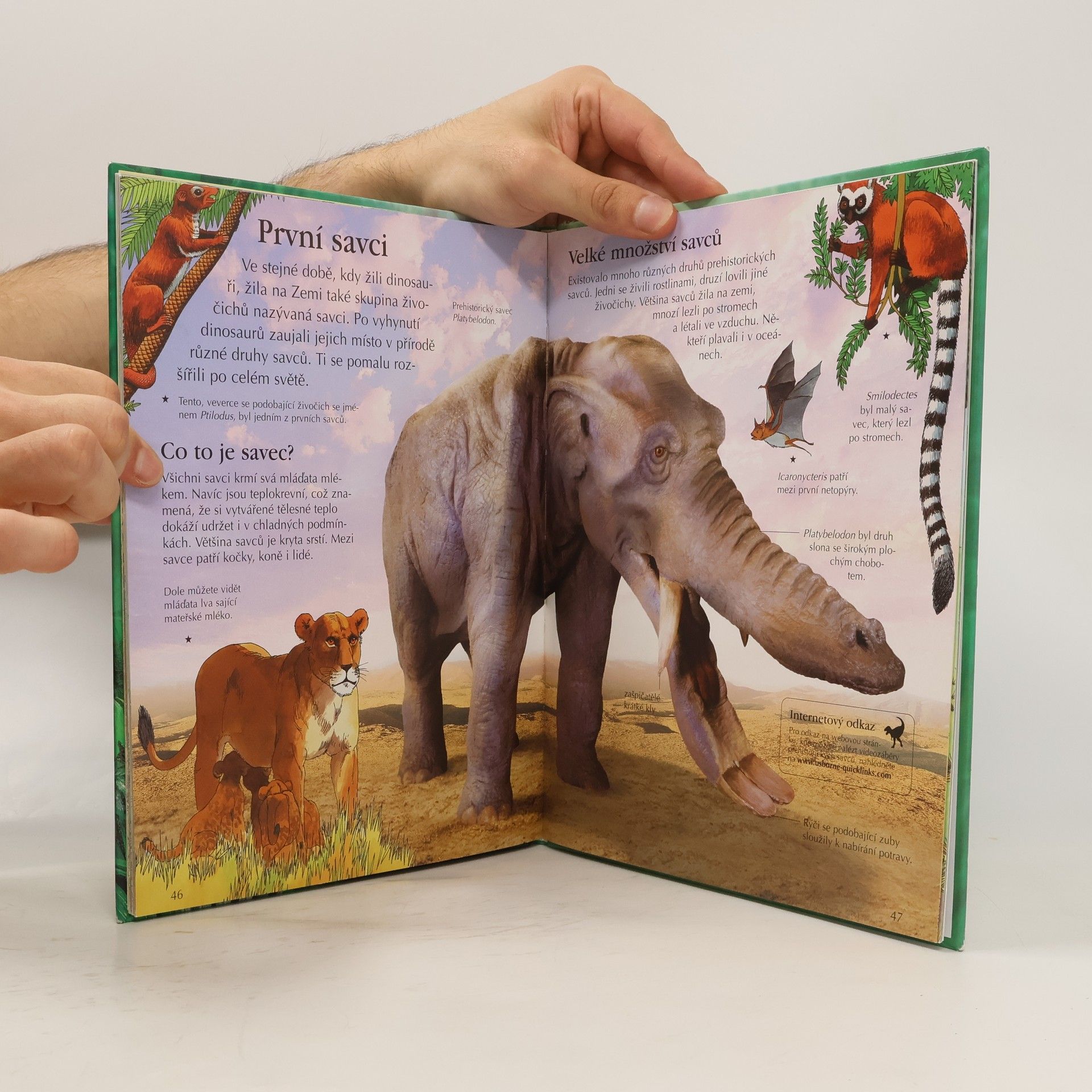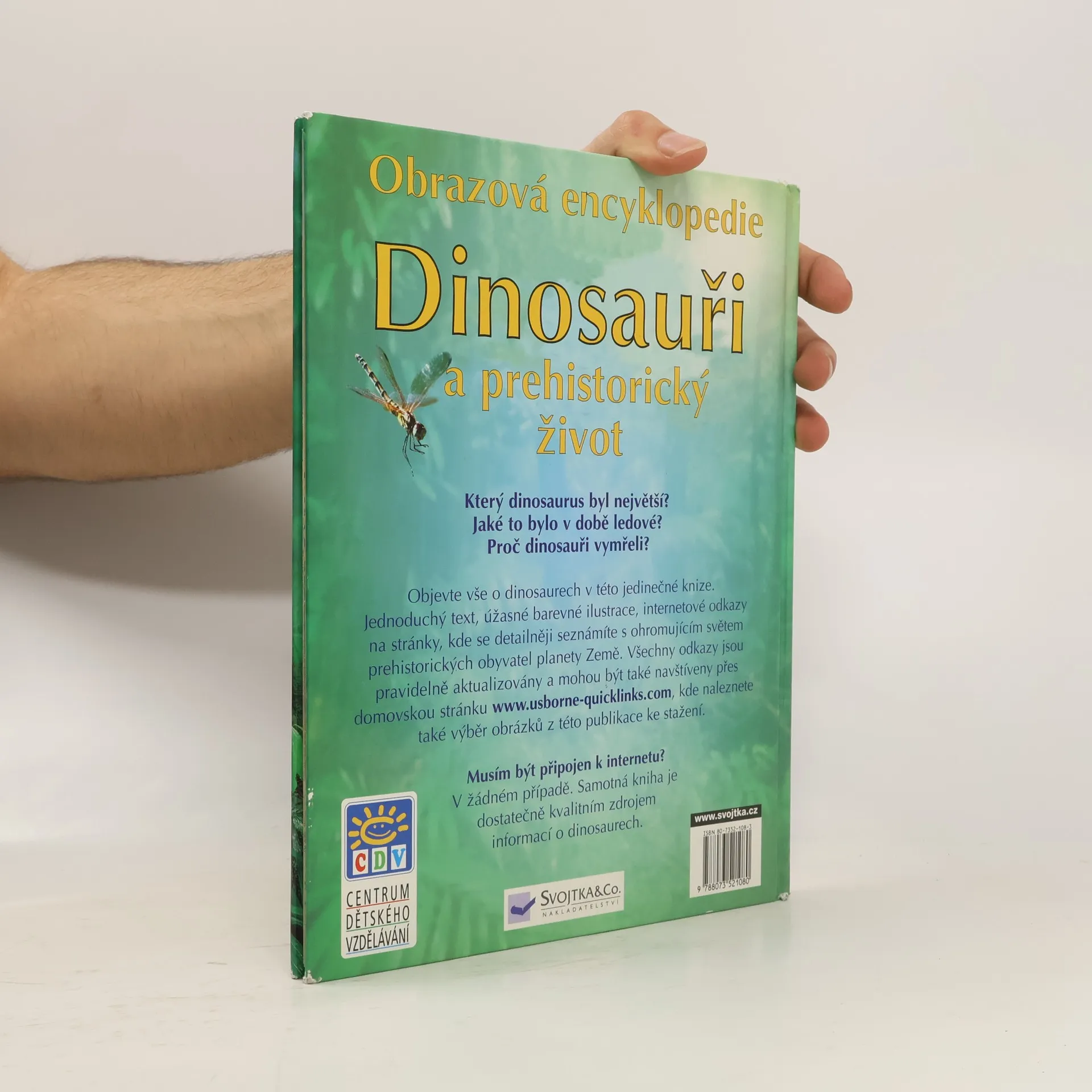 Objevte vše o dinosaurech v této jedinečné knize. Jednoduchý text, úžasné barevné ilustrace, internetové odkazy na stránky, kde se detailněji seznámíte s ohromujícím světem prehistorických obyvatel naší planety. Všechny odkazy jsou pravidelně aktualizovány a mohou být také navštíveny přes domovskou stránku www. usborne-quicklinks.com, kde naleznete také výběr obrázků z této publikace ke stažení.