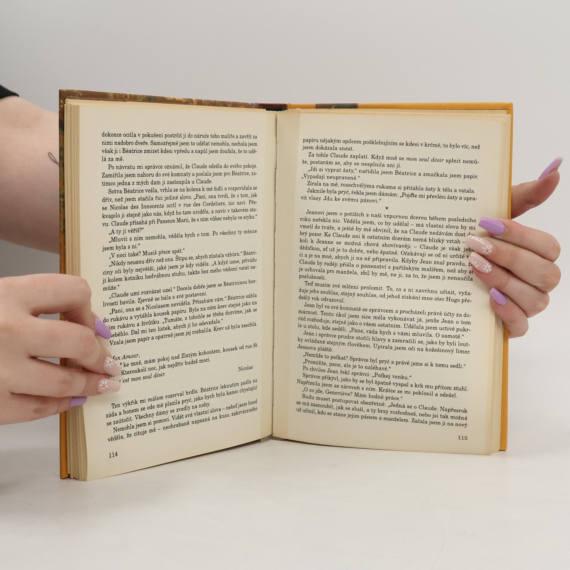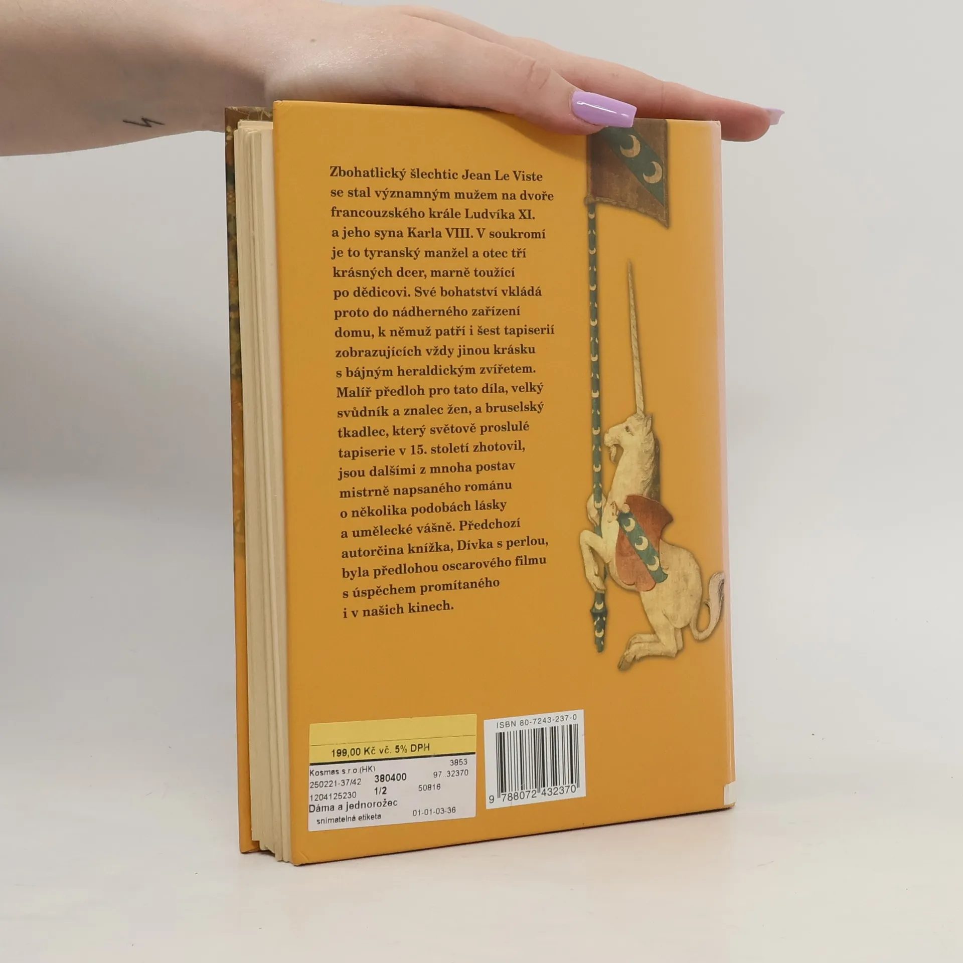 Šlechtic Jean de Viste se stal v 15. stol. významným mužem na dvoře francouzského krále Ludvíka XI. Své bohatství vkládá do nádherného zařízení domu, k němuž patří i šest tapiserií zobrazujících vždy jinou krásku s bájným zvířetem. Malíř předloh pro tato díla, velký svůdník a znalec žen, a bruselský tkadlec těchto světově proslulých gobelínů jsou další z mnoha postav mistrně napsaného románu. Předchozí autorčina knížka, Dívka s perlou, byla předlohou oscarového filmu s úspěchem promítaného i v našich kinech.