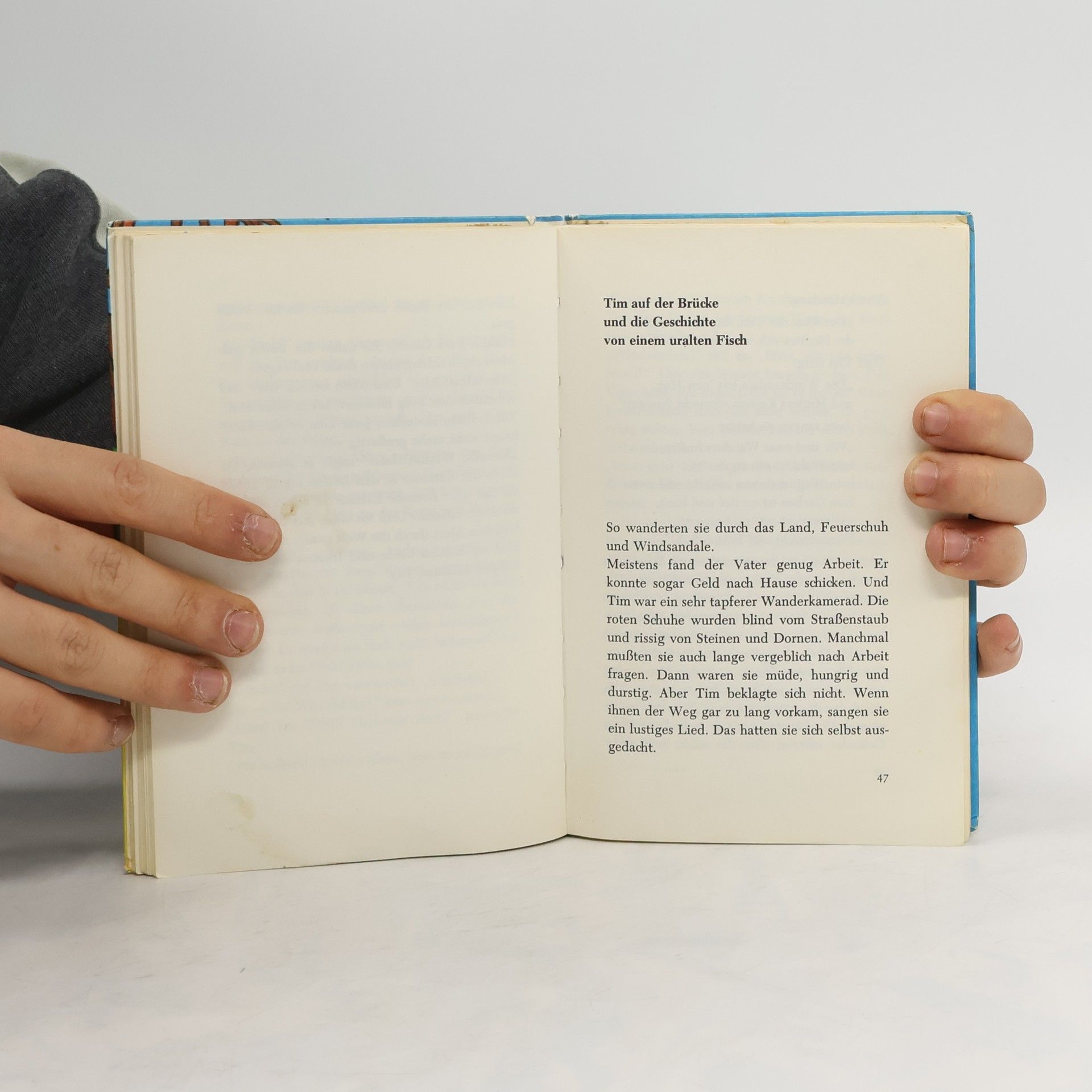Tim ist unzufrieden: Sein Name gefällt ihm nicht, er möchte nicht so pummelig sein und überhaupt will er ein ganz anderer werden. Zum Glück hat er bald Geburtstag und sein Vater hat ihm bereits ein Geschenk versprochen, das all seine Probleme lösen soll. Als der große Tag dann endlich da ist, bekommt Tim ein Zelt, nagelneue rote Schuhe und, was das Beste ist: Sein Vater nimmt sich vier Wochen Zeit für ihn, um mit ihm auf Wanderschaft zu gehen - vier Wochen! Eine abenteuerliche Reise beginnt, auf der Tim "Feuerschuh" und sein Vater "Windsandale" jede Menge erleben, und als sie zurückkehren, weiß Tim, dass er eigentlich alles hat, um glücklich zu sein: Eltern, die ihn lieben, die Zeit für ihn haben und ihn ernst nehmen.