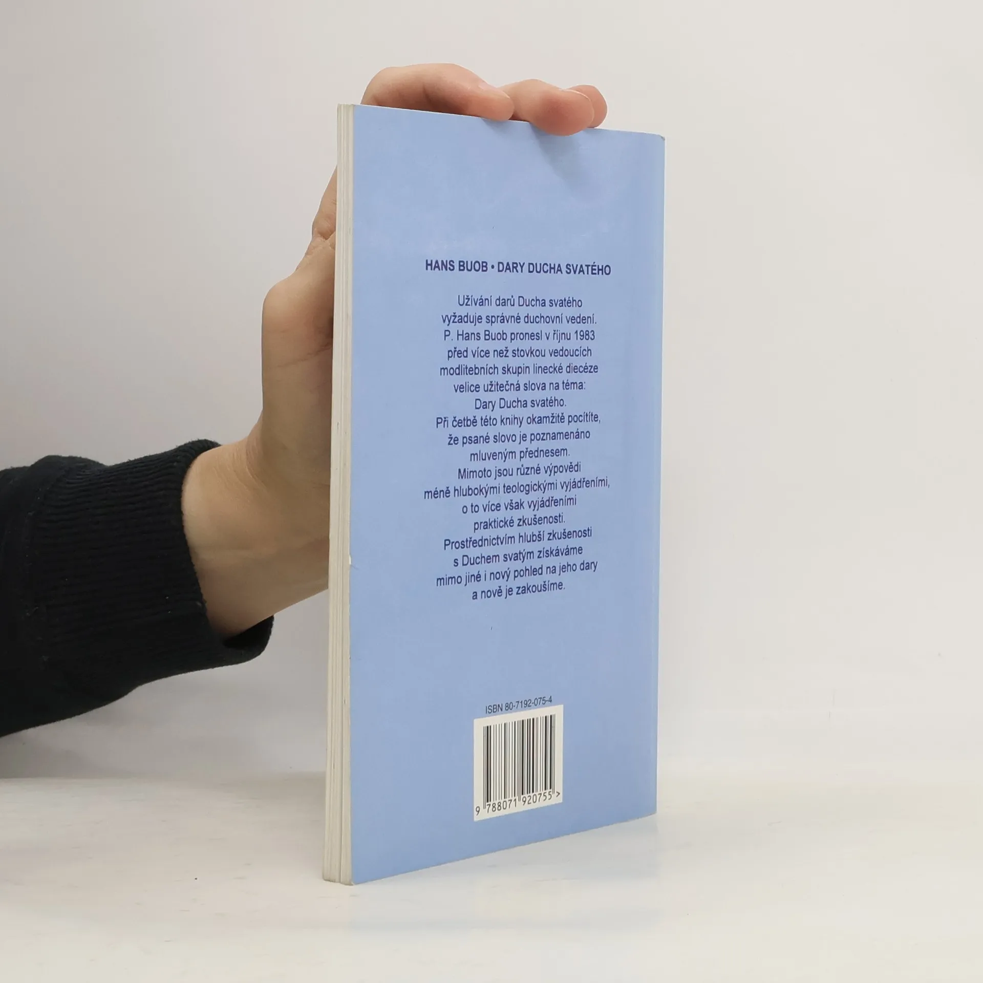 Užívání darů Ducha svatého vyžaduje správné duchovní vedení. P. Hans Buob pronesl v říjnu 1983 před více než stovkou vedoucích modlitebních skupin linecké diecéze velice užitečná slova na téma: Dary Ducha svatého. Při četbě této knihy okamžitě pocítíte, že psané slovo je poznamenané mluveným přednesem. Mimoto jsou různé výpovědi méně hlubokými teologickými vyjádřeními, o to více však vyjádřeními praktické zkušenosti. Prostřednictvím hlubší zkušenosti s Duchem svatým získáváme mimo jiné i nový pohled na jeho dary a nově je zakoušíme.