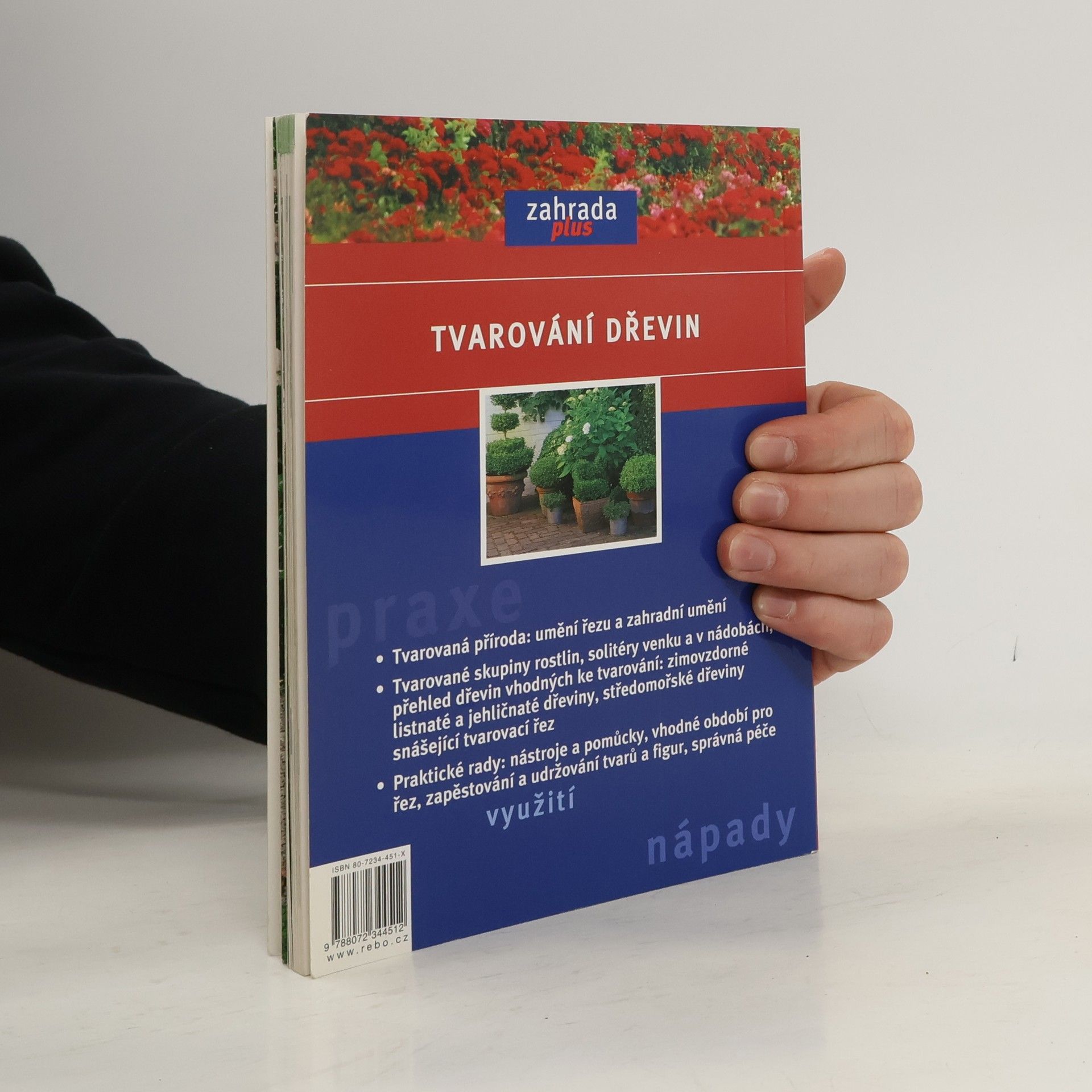 Tvarovaná příroda: umění řezu a zahradní umění - Tvarované skupiny rostlin, solitéry venku a v nádobách, přehled dřevin vhodných ke tvarování: zimovzdorné listnaté a jehličnaté dřeviny, středomořské dřeviny snášející tvarovací řez - Praktické rady: nástroje a pomůcky, vhodné období pro řez, zapěstování a udržování tvarů a figur, správná péče.