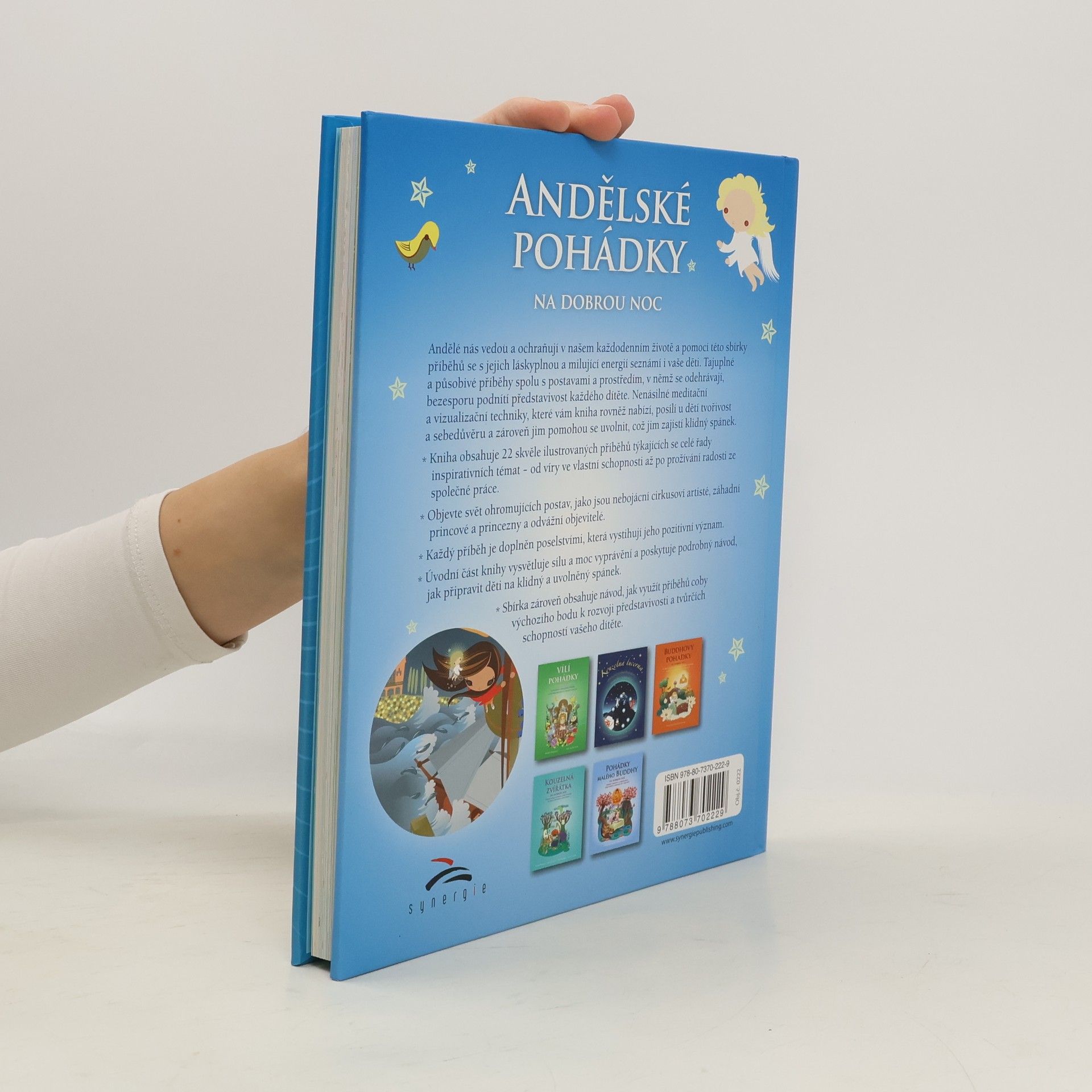 Andělé nás vedou a ochraňují v našem každodenním životě a pomocí této sbírky příběhů se s jejich láskyplnou a milující energií seznámí i vaše děti. Tajuplné a působivé příběhy spolu s postavami a prostředím, v němž se odehrávají, bezesporu podnítí představivost každého dítěte. Nenásilné meditační a vizualizační techniky, které vám kniha rovněž nabízí, posílí u dětí tvořivost a sebedůvěru a zároveň jim pomohou se uvolnit, což jim zajistí klidný spánek. Kniha obsahuje 22 skvěle ilustrovaných příběhů týkajících se celé řady inspirativních témat – od víry ve vlastní schopnosti až po prožívání radosti ze společné práce. Objevte svět pohádkových postav, jako jsou nebojácní cirkusoví artisté, záhadní princové a princezny a odvážní objevitelé. Každý příběh je doplněn poselstvími, která vystihují jeho pozitivní význam. Úvodní část knihy vysvětluje sílu a moc vyprávění a poskytuje podrobný návod, jak připravit děti na klidný a uvolněný spánek. Knížka zároveń obsahuje návod, jak využít příběhu k rozvoji představivosti a tvůrčích schopností vašeho dítěte.