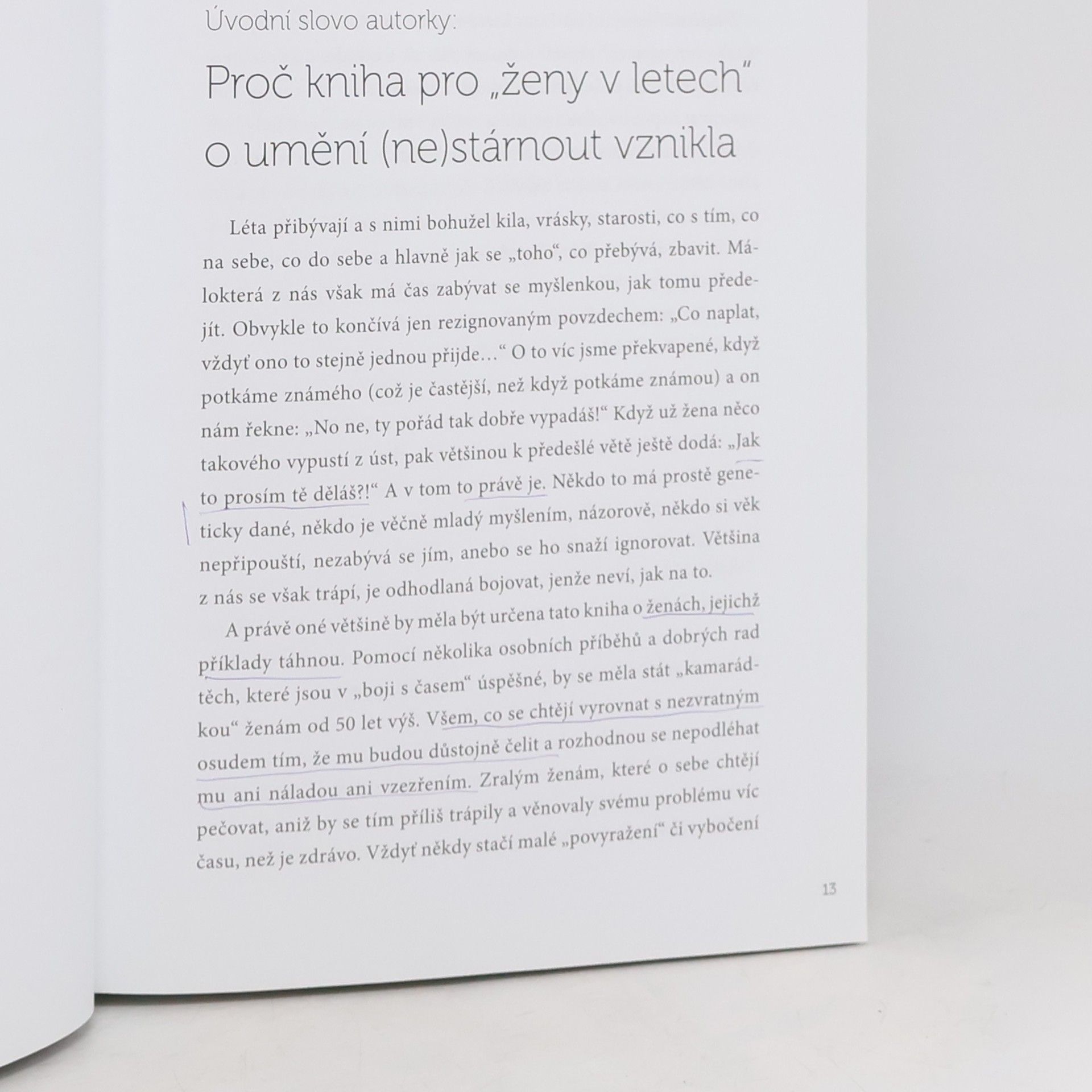 Táňa Fischerová, Květa Fialová, Marie Retková, Vladimíra Dvořáková, Helena Illnerová, Magdalena Dietlová a mnohé další ženy nám dokazují, že věk nehraje žádnou roli a stárnout se dá s elegancí. To zaujalo a inspirovalo režisérku a publicistku Olgu Struskovou k vytvoření knihy složené z rozhovorů s těmito úspěšnými a uznávanými dámami, které navíc doplňují názory odborníků na ženskou krásu po padesátce.