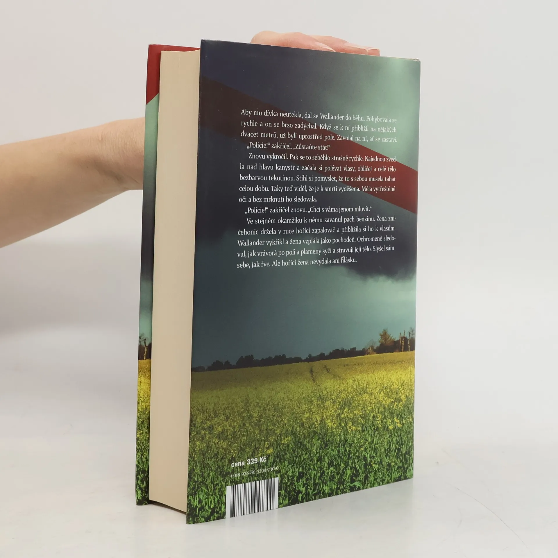 To léto patří k nejteplejším, jaká ve Švédsku lidé pamatují. Komisař Wallander se chystá na dovolenou s novou ženou, která se objevila v jeho životě, a doufá, že to jeho vzpurná dcera a stárnoucí otec nějak zvládnou bez něj. Jenže letní pohoda nemilosrdně skončí, když se před jeho očima upálí v řepkovém poli mladá dívka. Krátce nato udeří vrah, jehož bestialita nezná mezí. Za oběť si vybere bývalého švédského ministra spravedlnosti. Brzy se však ukáže, že zavražděný je jen první z řady obětí sériového vraha… Jaké je spojení mezi ministrem v penzi, úspěšným galeristou a obyčejným zlodějíčkem? Proč vrah oběti skalpuje? Kolik jich ještě bude? A kdo byla upálená dívka? Wallander usilovně hledá odpovědi a především toho, kdo má ta zvěrstva na svědomí. Nemá přitom ani tušení, že vrah je blíž, než by si přál.