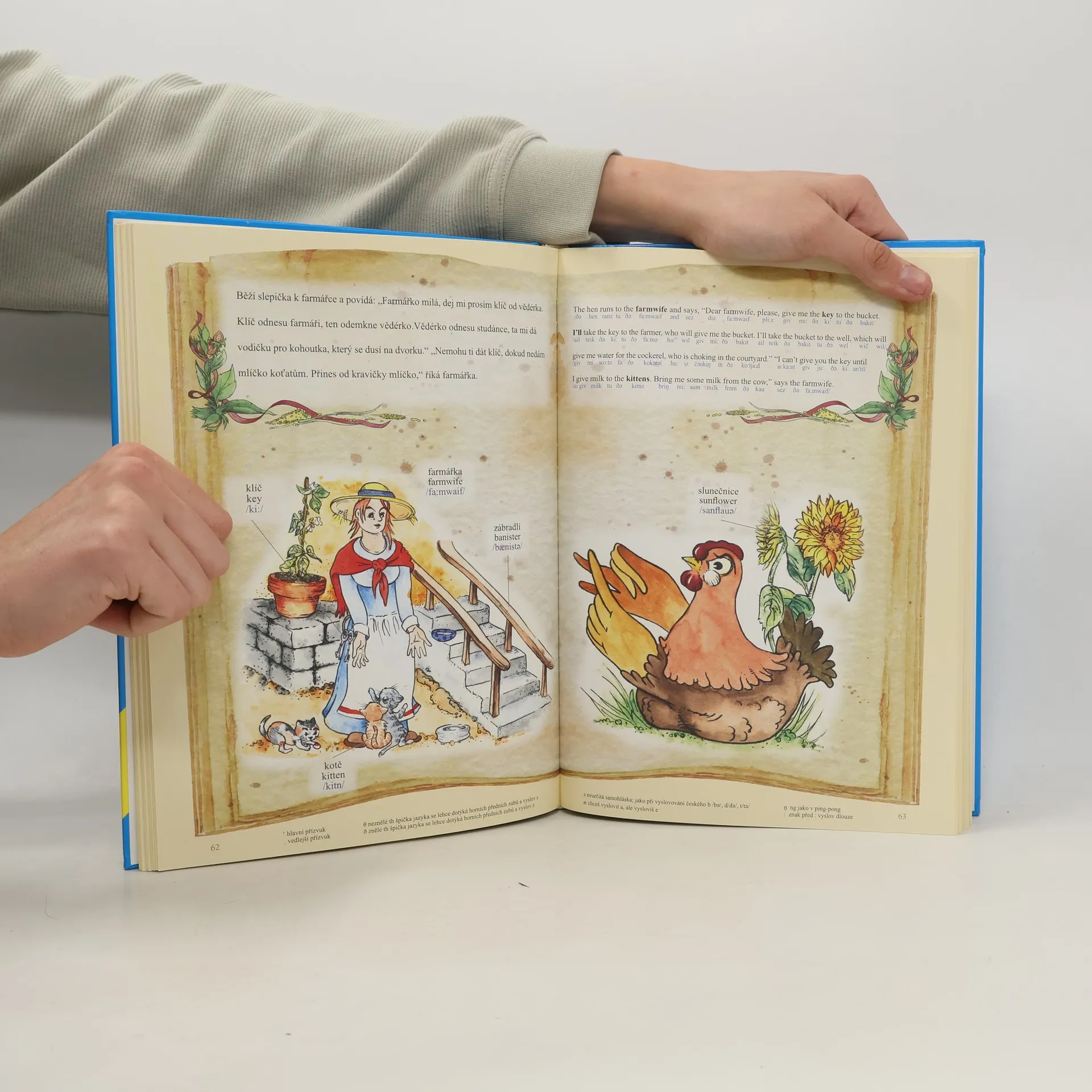 Tato kniha pohádek v české a anglické verzi je určena pro malé začátečníky, kteří dělají své první krůčky s angličtinou. Pohádky jsou převyprávěny jako stručné, jednoduché příběhy tak, aby anglická verze začátečníkům nedělala problémy. Velkou pomocí při osvojování si základů anglického jazyka pak bude kompletní fonetický přepis textů, a to jak samotných pohádek, tak i slovíček ve slovníčku a frází, které najdete za každou pohádkou. S pomocí rodičů je kniha vhodná i pro předškolní děti. S každou následující pohádkou se pak obtížnost a délka textu zvyšuje, takže s knihou mohou pracovat i děti, které si úplné základy anglického jazyka již částečně osvojily. Pojďme se tedy společně s hrdiny pohádek O Palečkovi, Jak jde vejce na vandr, Zlatovláska, O perníkové chaloupce a dalších naučit zábavnou formou řadu anglických slov a vět.