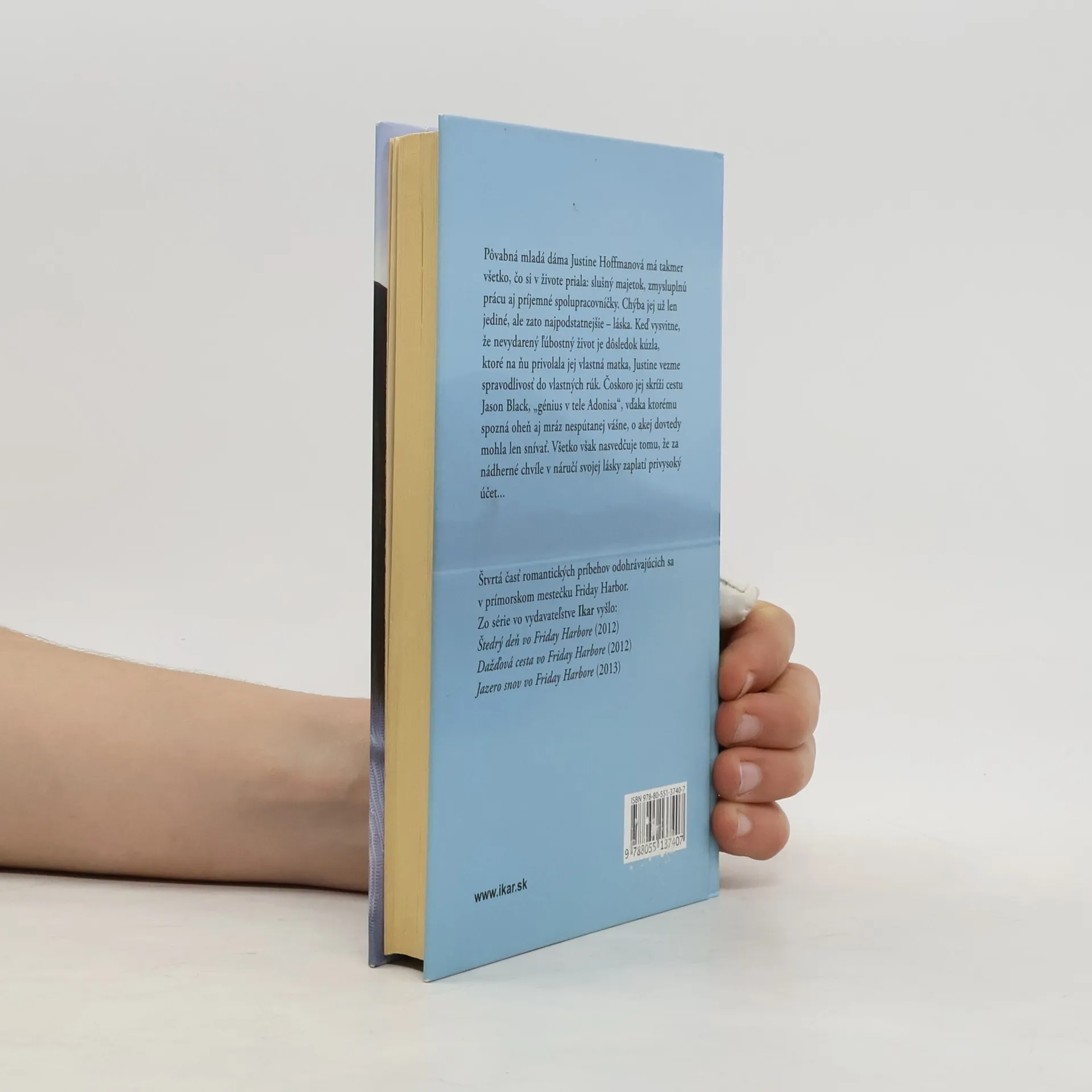 Pôvabná mladá dáma Justine Hoffmanová má takmer všetko, čo si v živote priala: slušný majetok, zmysluplnú prácu aj príjemné spolupracovníčky. Chýba jej už len jediné, ale zato najpodstatnejšie – láska. Keď vysvitne, že nevydarený ľúbostný život je dôsledok kúzla, ktoré na ňu uvrhla jej vlastná matka, Justine vezme spravodlivosť do vlastných rúk. Čoskoro jej skríži cestu Jason Black, „génius v tele Adonisa“, vďaka ktorému spozná oheň aj mráz nespútanej vášne, o akej dovtedy mohla len snívať. Všetko však nasvedčuje tomu, že za nádherné chvíle v náručí svojej lásky zaplatí privysoký účet...
