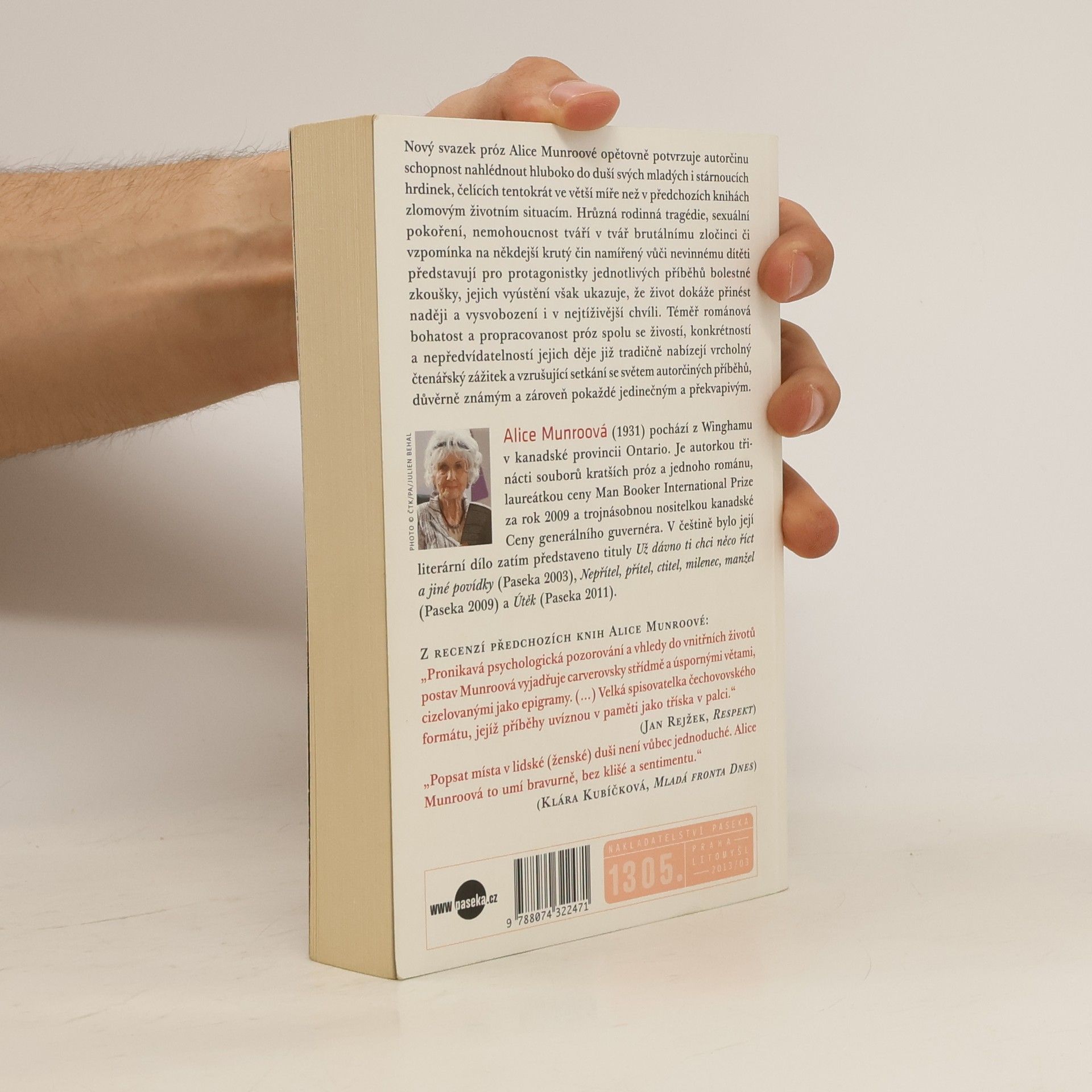 Zatím poslední svazek próz Alice Munroové opětovně potvrzuje autorčinu schopnost nahlédnout hluboko do duší svých mladých i stárnoucích hrdinek, čelících tentokrát ve větší míře než v předchozích knihách zlomovým životním situacím. Hrůzná rodinná tragédie, sexuální pokoření, nemohoucnost tváří v tvář brutálnímu zločinci či vzpomínka na někdejší krutý čin namířený vůči nevinnému dítěti představují pro protagonistky jednotlivých příběhů bolestné zkoušky, jejich vyústění však ukazuje, že život dokáže přinést naději a vysvobození i v nejtíživější chvíli. Téměř románová bohatost a propracovanost próz spolu se živostí, konkrétností a nepředvídatelností jejich děje nabízejí již tradičně vrcholný čtenářský zážitek a nové vzrušující setkání se světem autorčiných příběhů, důvěrně známým a zároveň pokaždé jedinečným a překvapivým.