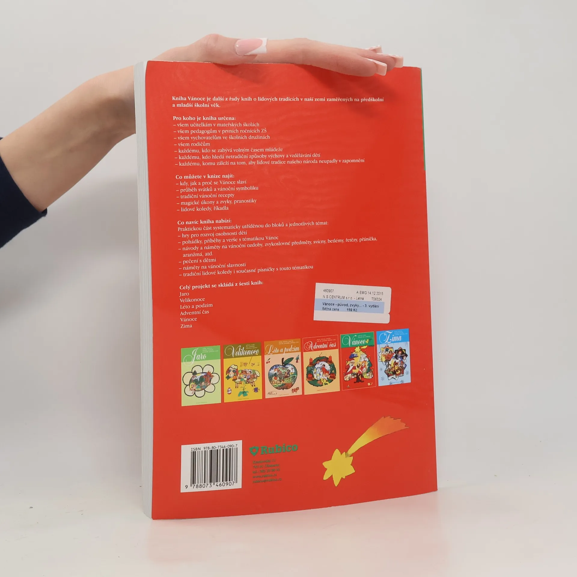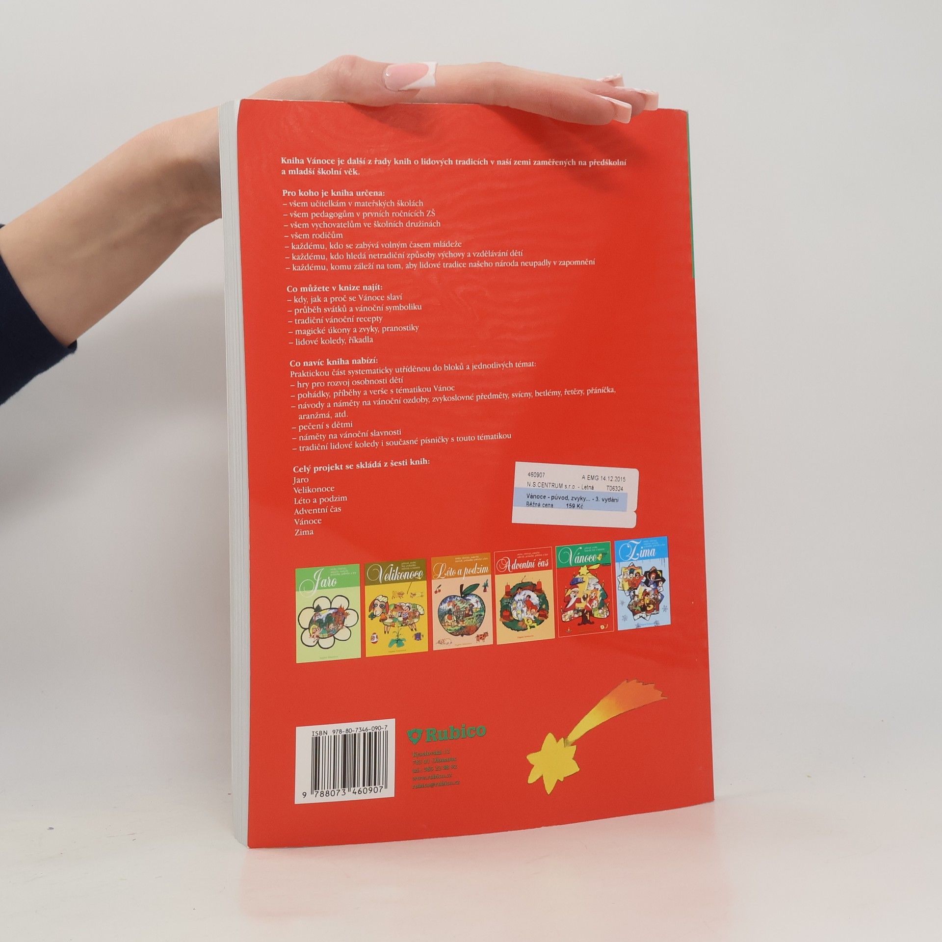V knize naleznete: původ Vánoc, průběh svátků a vánoční symboliku, recepty na vánoční pečivo a pokrmy, pranostiky, známé i méně známé vánoční zvyky, tradiční lidové koledy a říkadla; didaktické, smyslové, dramatické a pohybové hry; pohádky a příběhy, básničky, verše na novoročenky, náměty a návody na vánoční přání, vánoční výzdobu, ozdoby na stromeček, vánoční řetězy, svícny, betlémy, vánoční aranžmá, pečení cukroví s dětmi, náměty na vánoční slavnosti, tradiční koledy, písně o Vánocích aj. Tato kniha je součástí edice popisující lidové tradice a zvyky v naší zemi. Jedná se o šest samostatných publikací: Zima, Jaro, Velikonoce, Léto a podzim, Adventní čas, Vánoce.
