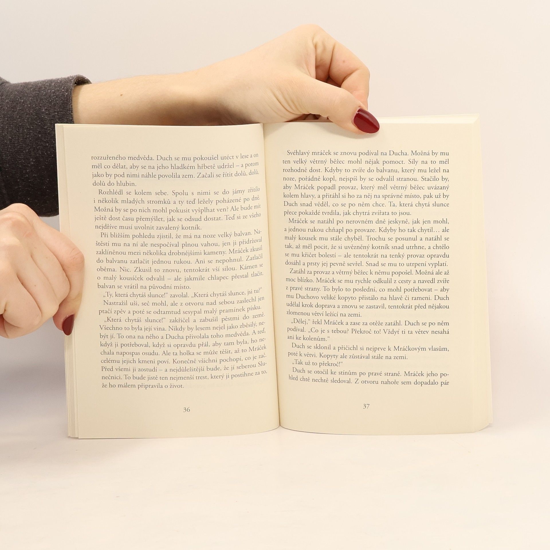 Ta, která chytá slunce je na projížďce na své milé Slunečnici, když vtom v lese přistihne Svéhlavého mráčka, chlapce z jejich indiánského kmene, jak právě jede na Duchovi, větrném běžci svého otce, ačkoliv to má zakázáno. A náhle se jen kousek od nich objeví mládě medvěda grizzlyho! Svéhlavý mráček prchá na Duchovi – a najednou se pod nimi otevře zem a oba se propadnou do jakési jeskyně! Ačkoliv má dívka obrovský strach, rozhodne se je se Slunečnicí v podzemních chodbách hledat. Podaří se jí Mráčka a Ducha nalézt – a podaří se jim všem najít z bludiště cestu ven? Tato kniha vyjde v prosincovém obřím adventním balíčku. Zdroj : www.pennygirl.cz