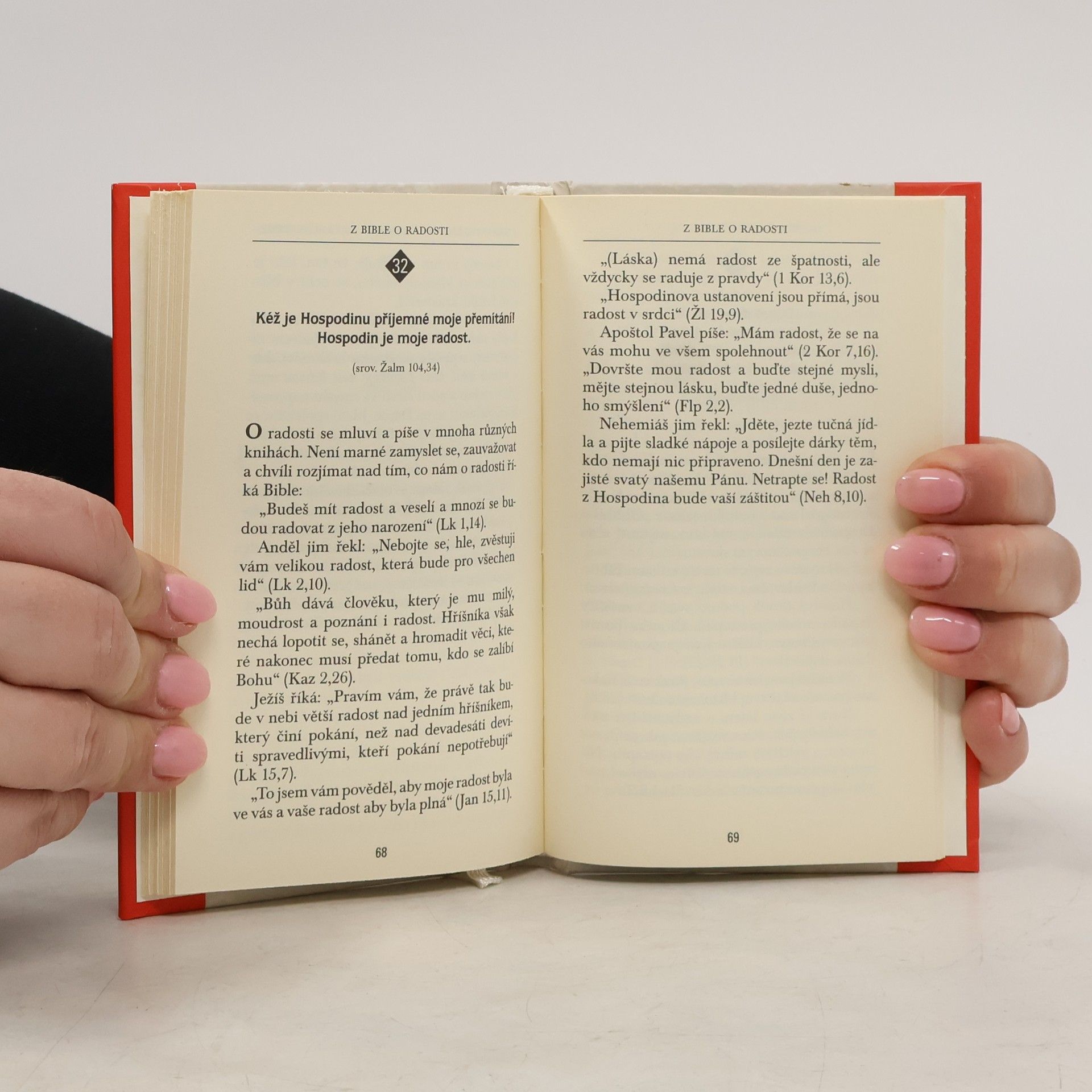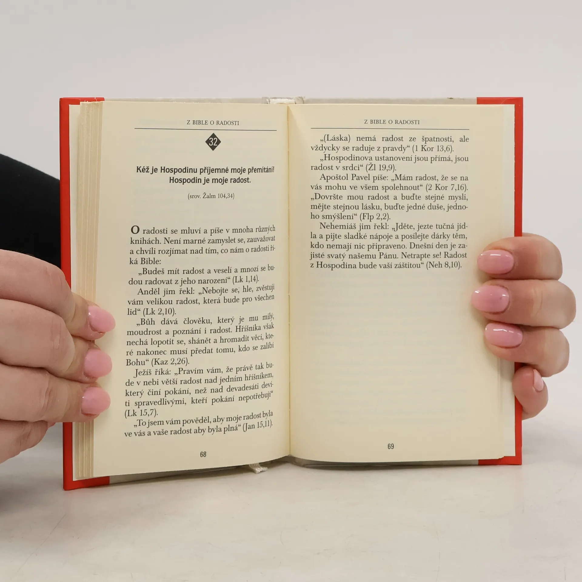 „Kolikrát přejeme druhým lidem radost! Co jim to vlastně přejeme? Z čeho se mají radovat? Radost nám může způsobit mnohé – styk s přáteli, události v manželství, to, co se děje doma i v práci. Radost nám působí i pobyt v přírodě, cestování, krásná hudba. Radost můžeme mít i z peněz. Mnohé se o tom ví. A ví se, že není radost jako radost, že radost se liší od veselí, že existuje radost mělká – jen tak povrchní – a radost hluboká, vertikální, radost trvající jen krátce a radost, která nás může provázet celý život… Není marné orientovat se i v oblasti radostí.“