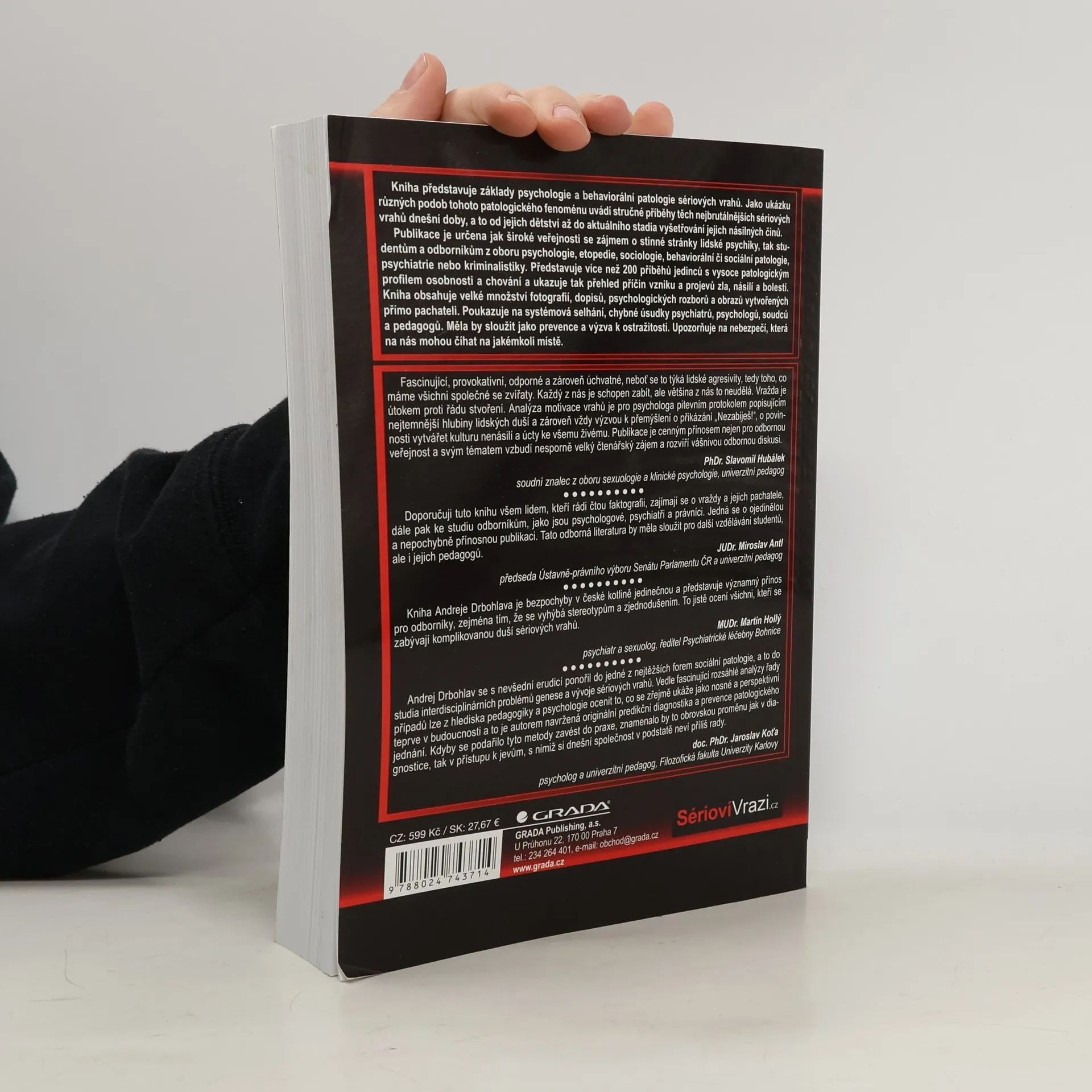Kniha představuje základy psychologie a behaviorální patologie sériových vrahů. Jako praktickou ukázku různých podob tohoto patologického fenoménu uvádí stručné, srozumitelné a čtivé příběhy těch nejbrutálnějších sériových vrahů dnešní doby, a to od jejich dětství až do aktuálního stádia vyšetřování jejich násilných činů. Publikace je určena stejně tak široké veřejnosti se zájmem o stinné stránky lidské psychiky, jako i studentům a odborníkům z oboru psychologie, etopedie, sociologie, behaviorální či sociální patologie, psychiatrie či kriminalistiky. Představuje soubor velmi kvalitně zpracovaných kazuistik, tedy více jak 200 příběhů jedinců s vysoce patologickým profilem osobnosti a chování. Ukazuje tak přehled příčin vzniku a projevu zla, násilí a bolesti. Kniha obsahuje velké množství fotografií, dopisů, psychologických rozborů a obrazů vytvořených pachateli. Poukazuje na systémová selhání, chybné úsudky psychiatrů, psychologů, soudců a pedagogů. Měla by sloužit jako prevence a výzva k větší ostražitosti. Upozorňuje na složitost a aktuálnost tohoto jevu a skryté nebezpečí, které číhá na svou oběť na jakémkoliv místě.