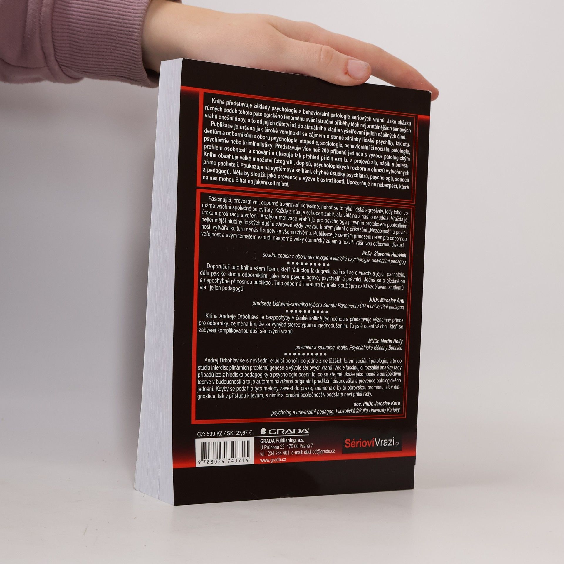 Kniha představuje základy psychologie a behaviorální patologie sériových vrahů. Jako praktickou ukázku různých podob tohoto patologického fenoménu uvádí stručné, srozumitelné a čtivé příběhy těch nejbrutálnějších sériových vrahů dnešní doby, a to od jejich dětství až do aktuálního stádia vyšetřování jejich násilných činů. Publikace je určena stejně tak široké veřejnosti se zájmem o stinné stránky lidské psychiky, jako i studentům a odborníkům z oboru psychologie, etopedie, sociologie, behaviorální či sociální patologie, psychiatrie či kriminalistiky. Představuje soubor velmi kvalitně zpracovaných kazuistik, tedy více jak 200 příběhů jedinců s vysoce patologickým profilem osobnosti a chování. Ukazuje tak přehled příčin vzniku a projevu zla, násilí a bolesti. Kniha obsahuje velké množství fotografií, dopisů, psychologických rozborů a obrazů vytvořených pachateli. Poukazuje na systémová selhání, chybné úsudky psychiatrů, psychologů, soudců a pedagogů. Měla by sloužit jako prevence a výzva k větší ostražitosti. Upozorňuje na složitost a aktuálnost tohoto jevu a skryté nebezpečí, které číhá na svou oběť na jakémkoliv místě.