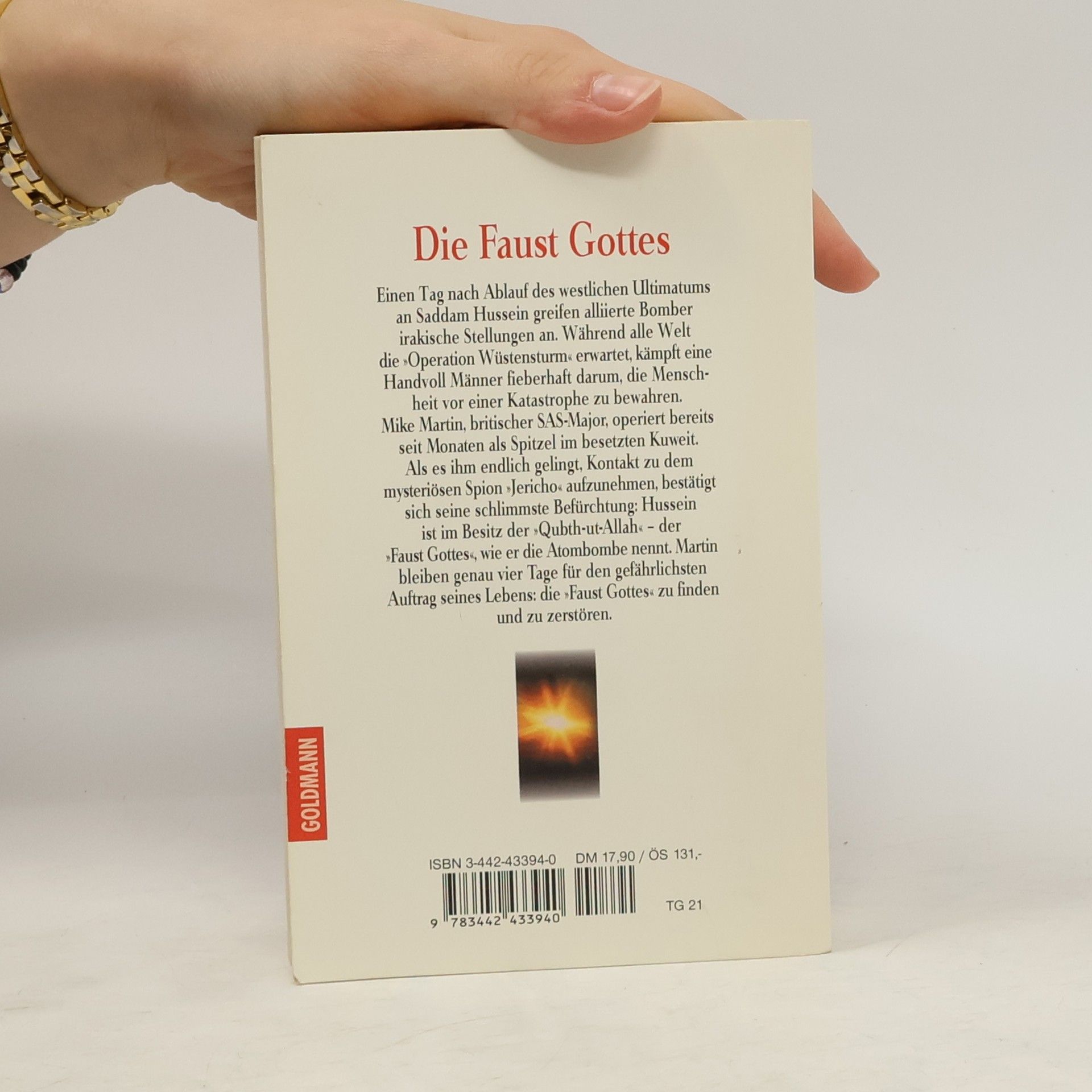 Einen Tag nach Ablauf des westlichen Ultimatums an Saddam Hussein greifen alliierte Bomber irakische Stellungen an. Während alle Welt die "Operation Wüstensturm" erwartet. kämpft eine Handvoll Männer fieberhaft darum. die Menschheit vor einer Katastrophe zu bewahren. Mike Martin, britischer SAS-Major, operiert bereits seit Monaten als Spitzel im besetzten Kuweit. Als es ihm endlich gelingt, Kontakt zu dem mysteriösen Spion "Jericho" aufzunehmen, bestätigt sich seine schlimmste Befürchtung: Hussein ist im Besitz der "Qubthut-Allah" - der "Faust Gottes". wie er die Atombombe nennt. Martin bleiben genau vier Tage für den gefährlichsten Auftrag seines Lebens: die "Faust Gottes" zu finden und zu zerstören.