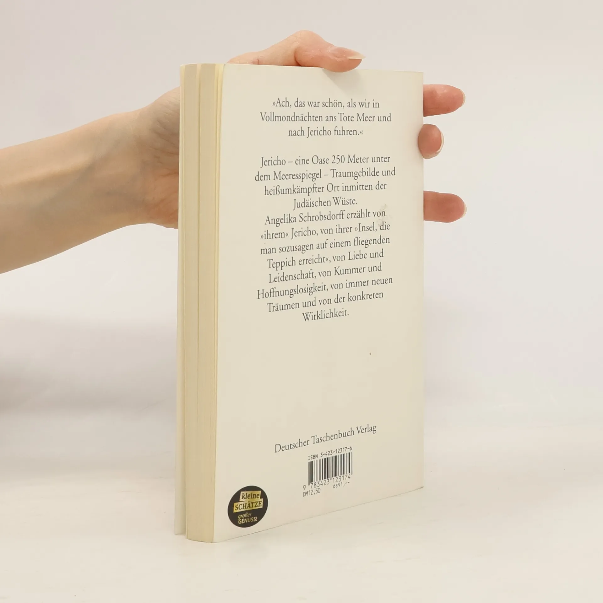 Eine wehmütige Liebesgeschichte Jericho - Traumgebilde und heißumkämpfter Ort inmitten der Judäischen Wüste. Angelika Schrobsdorff erzählt von »ihrem« Jericho, von Liebe und Leidenschaft, von Kummer und Hoffnungslosigkeit, von immer neuen Träumen und von der konkreten Wirklichkeit. Mit Distanz und zärtlicher Ironie berichtet sie auch von den verschiedenartigsten Menschen. So wird dieses Porträt einer Stadt zu einem meisterhaft erzählten Stück Literatur, zu einer wehmütigen Liebesgeschichte.