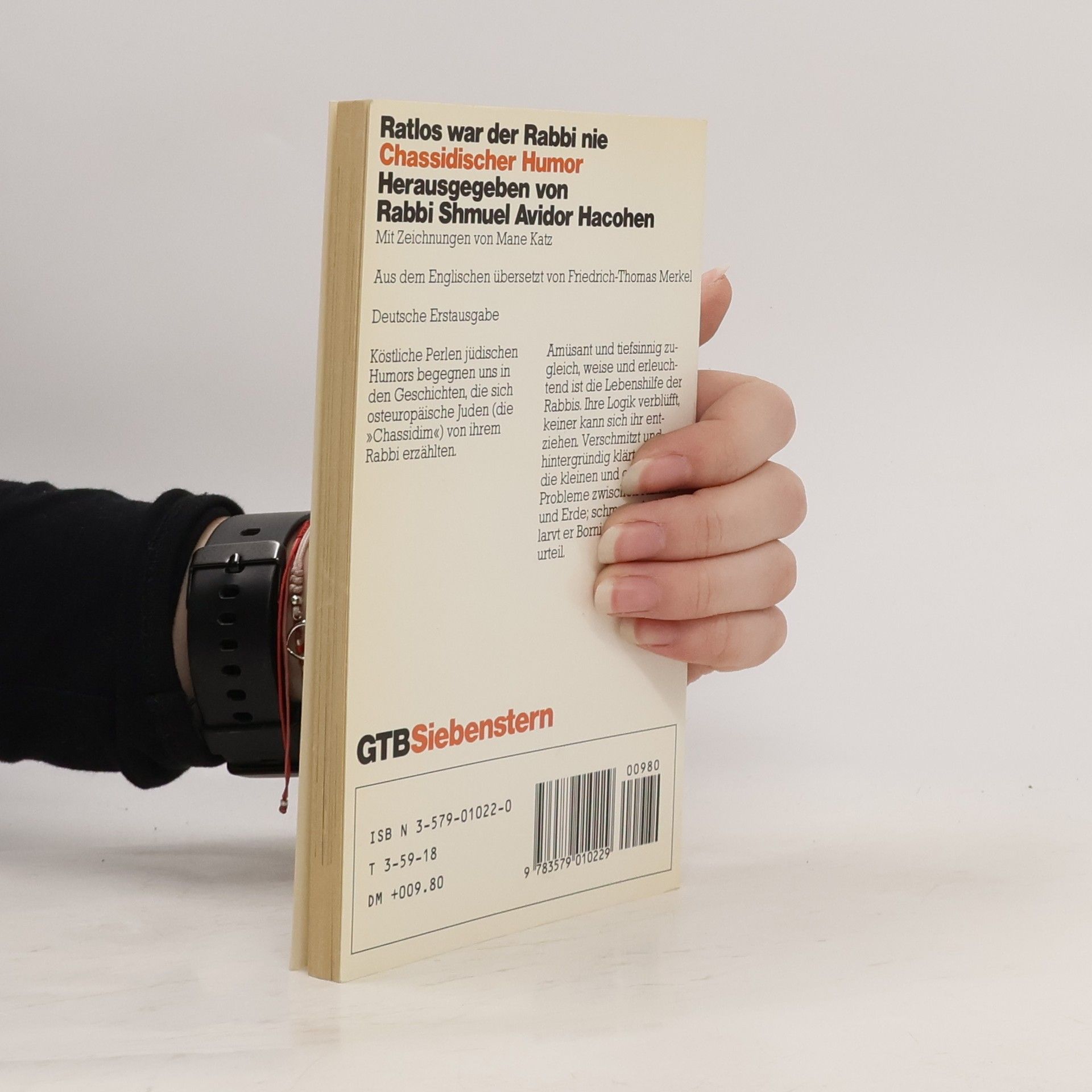 „ Köstliche Perlen jüdischen Humors begegnen uns in den Geschichten, die sich osteuropäische Juden (die “Chassidim„) von ihrem Rabbi erzählten. Amüsant und tiefsinnig zugleich, weise und erleuchtend ist die Lebenshilfe der Rabbis. Ihre Logik verblüfft, keiner kann sich ihr entziehen. Verschmitzt und hintergründig klärt der Rabbi die kleinen und größeren Probleme zwischen Himmel und Erde; schmunzelnd entlarvt er Borniertheit und Vorurteil. Aus dem Englischen übersetzt von Friedrich-Thomas Merke.“