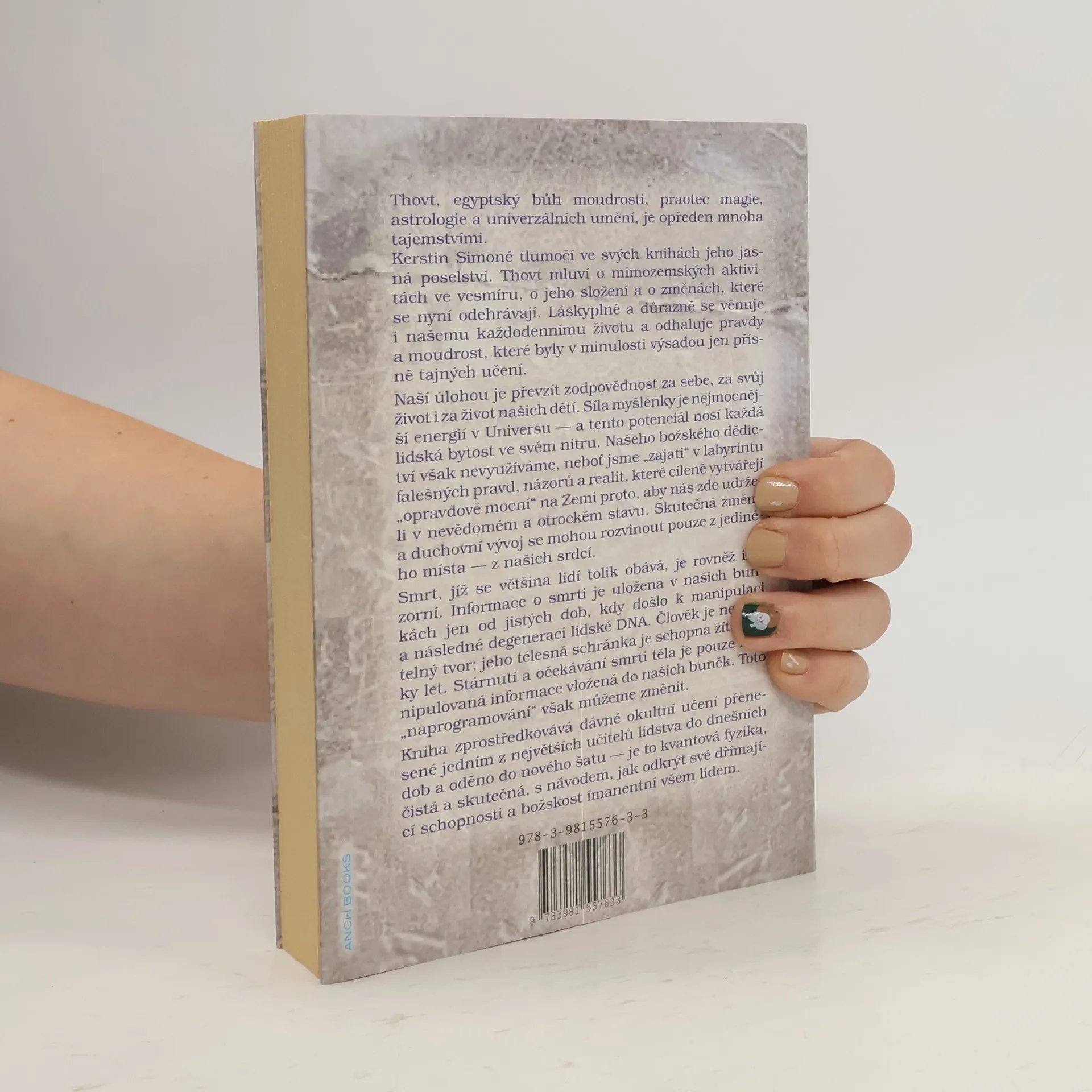 Thovt, egyptský bůh moudrosti, praotec magie, astrologie a univerzálních umění, je opředen mnoha tajemstvími. Kerstin Simoné tlumočí ve svých knihách jeho jasná poselství. Thovt mluví o mimozemských aktivitách ve vesmíru, o jeho složení a o změnách, které se nyní odehrávají. Láskyplně a důrazně se věnuje i našemu každodennímu životu a odhaluje pravdy a moudrost, které byly v minulosti výsadou jen přísně tajných učení. Naší úlohou je převzít zodpovědnost za sebe, za svůj život i za život našich dětí. Síla myšlenky je nejmocnější energií v Universu - a tento potenciál nosí každá lidská bytost ve svém nitru...