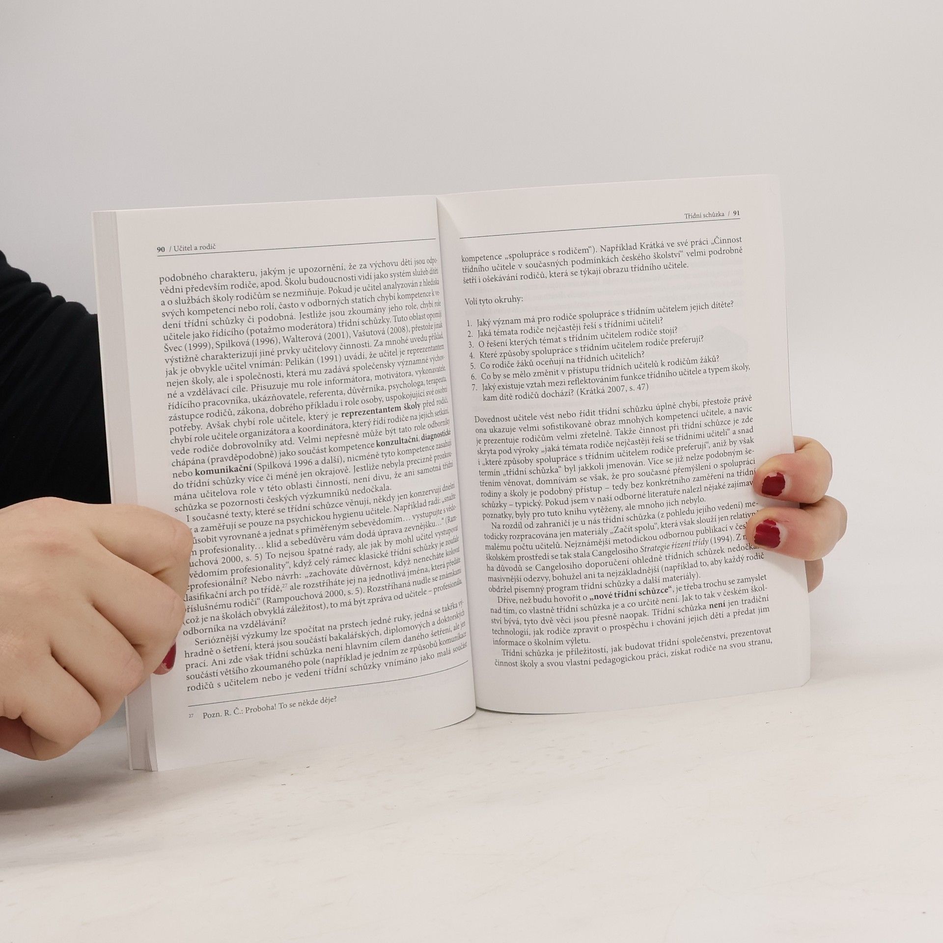 Publikace pojednává o tématu v pedagogické literatuře doposud opomíjeném: o spolupráci školy a rodičů. Je zaměřena především na učitele, který komunikuje s rodiči, vede třídní schůzky a nabízí rodičům další formy spolupráce (asistentské vyučování, návštěvu vyučování apod.). Autor se věnuje obvyklým druhům spolupráce (včetně domácích úkolů), ale i těm, jež nejsou v českém školním prostředí frekventované, což je například školní fundraising. Kromě reflexe současného stavu u nás nahlíží i do zahraničí. Kniha obsahuje případové studie, vlastní výzkum, analýzy praxe a další praktické a konkrétní informace.