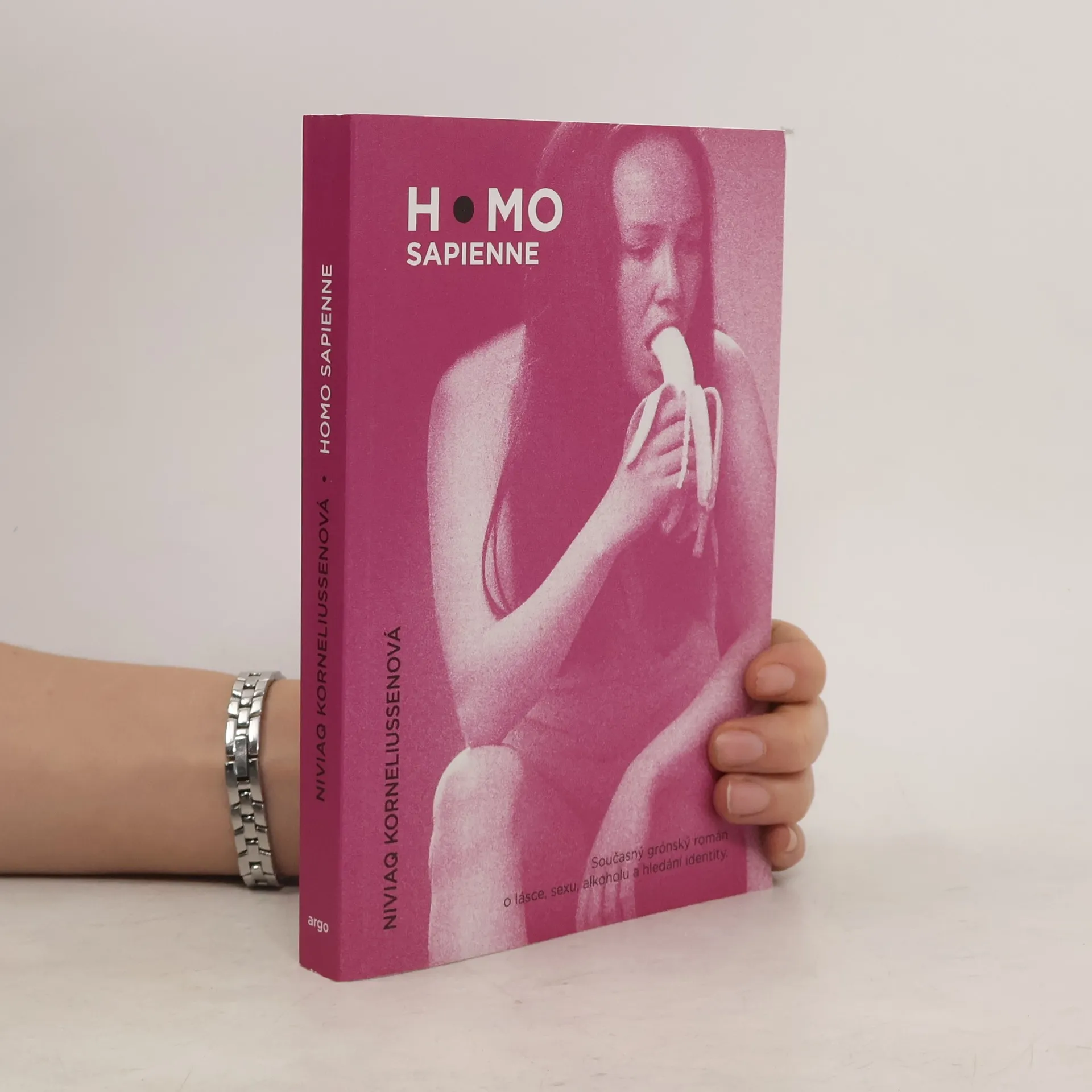 Román Homo sapienne zahýbal v roce 2014 nejen grónskou kulturní scénou, ale vzbudil zájem i v mezinárodních literárních kruzích. Netradiční ženská koncovka v názvu a zdůrazněné slovo „homo“ odkazující na homosexualitu naznačují, že od grónské autorky rozhodně nelze čekat popis úchvatných přírodních scenérií. Fia, Sára, Inuk, Arnaq a Ivik, hlavní postavy s různou sexuální orientací, vstupují do vzájemných vztahů, které se postupně komplikují, vyostřují a mění. Stejně jako většina vrstevníků po něčem touží, milují se a podvádějí, pochybují a doufají, ovšem v prostředí konzervativního sedmnáctitisícového grónského maloměsta. Současný grónský román o lásce, sexu, alkoholu a hledání identity.