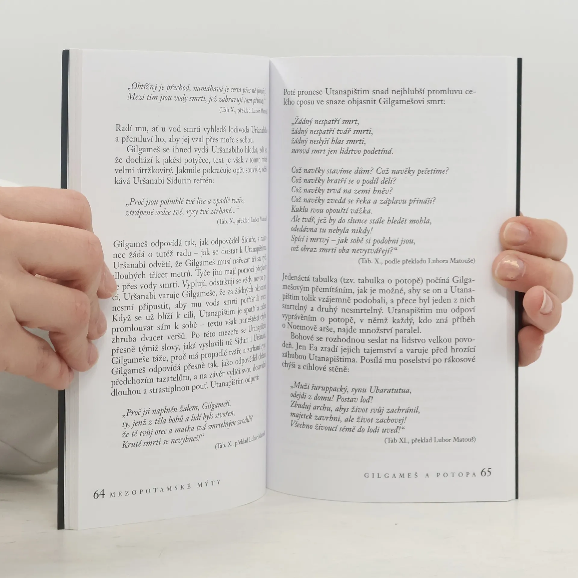 Kniha specialistky na mezopotámské klínopisné památky předkládá nejranější mýty, tedy příběhy o bozích a polobozích. Kombinuje převyprávění s četnými citacemi, jež přísně zachovávají charakter originálu. Publikace zahrnuje obsáhlou předmluvu, která čtenáře seznámí se zakladatelskými osobnostmi mezopotamistky, dobrodružným luštěním klínů, životem mezopotámského lidu a bohů i knižní kulturou prastarých civilizací na Eufratu a Tigridu. Text doplňují hojné černobílé ilustrace.