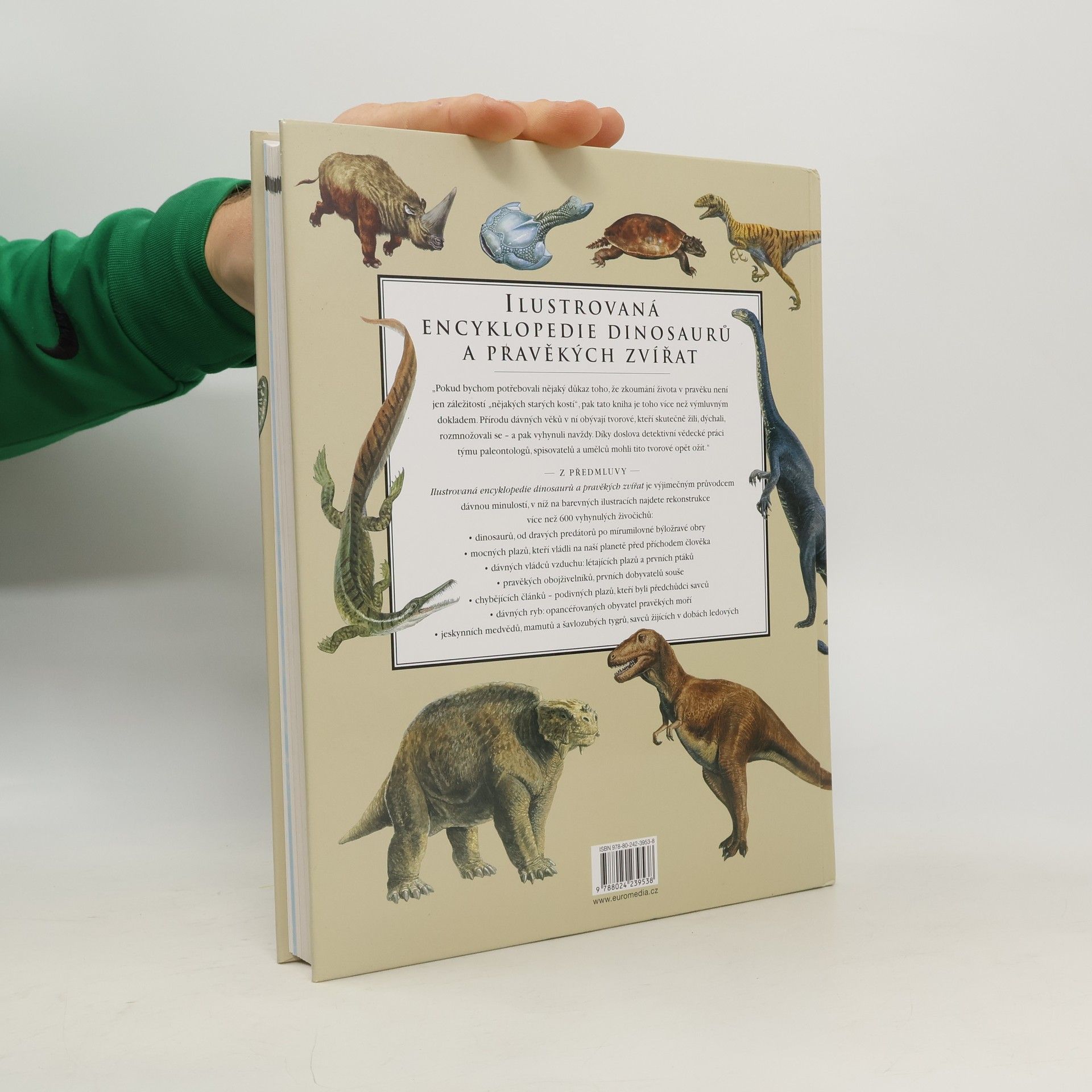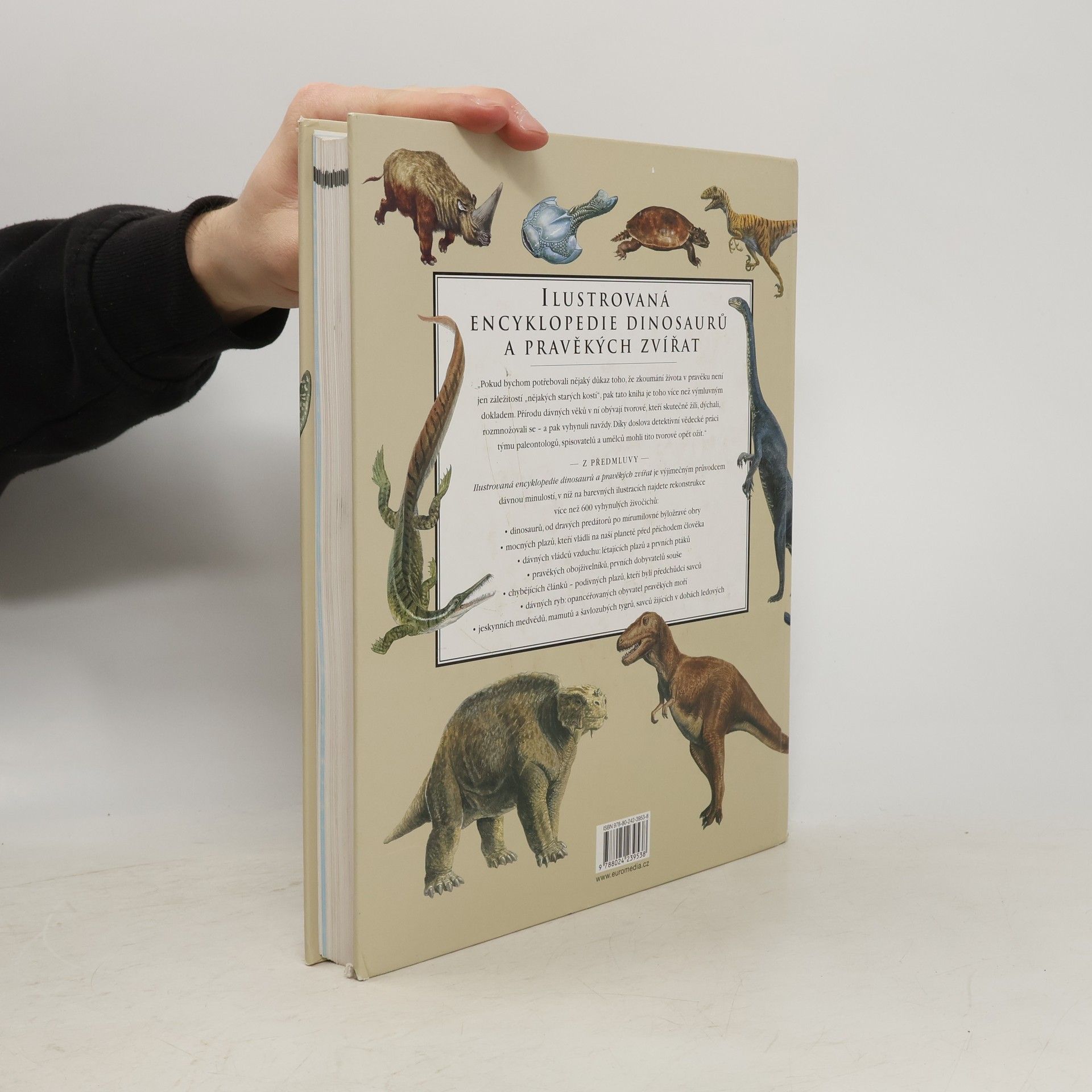 Bohatě ilustrovaný almanach pravěkých živočichů. Představuje více než 600 druhů, uspořádaných podle časové posloupnosti – od dravých dinosaurů po primitivní obojživelníky, od obrovských obrněných ryb po srstnaté mamuty, šavlozubé tygry nebo obrovité vlky. Každý druh je zachycen v barevné ilustraci a popsán poutavou biografií, plnou zajímavých údajů o pohybu, jídelníčku, biotopu a ekologické roli. Revize a aktualizace Douglas Palmer.
