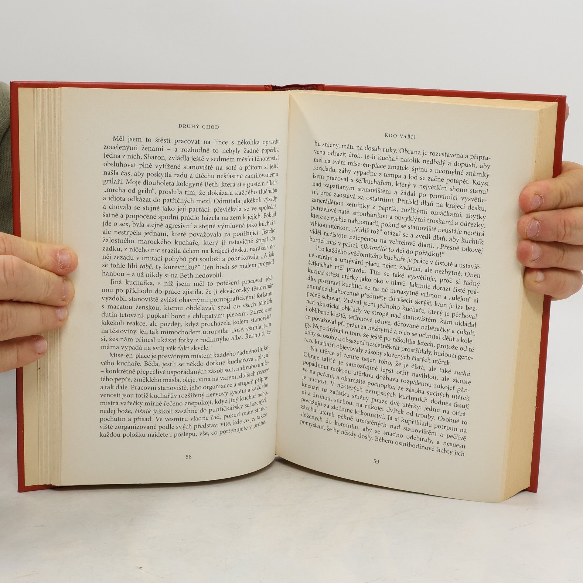 Podtitul: pikantní dobrodružství šéfkuchaře Tato nezapomenutelná kniha navždy změní váš pohled na restaurace. Kvalitní suroviny, chutný pokrm – v obou případech je základem krev, orgány, krutost a rozklad. Po pětadvaceti letech sexu, drog, zlotřilého chování a vysoké kulinářské školy se šéfkuchař a spisovatel Anthony Bourdain rozhodl vylít si srdce. Od své první ústřice k opovrhovanému umývači nádobí v rybí putyce v Provincetown přes kuchyni v Rainbow Room na vrcholu Rockefeller Center a prodejců drog v East Village až do Tokia, Paříže a zpátky do New Yorku… Bourdainovy příběhy z kuchyně jsou šokující i zábavné.