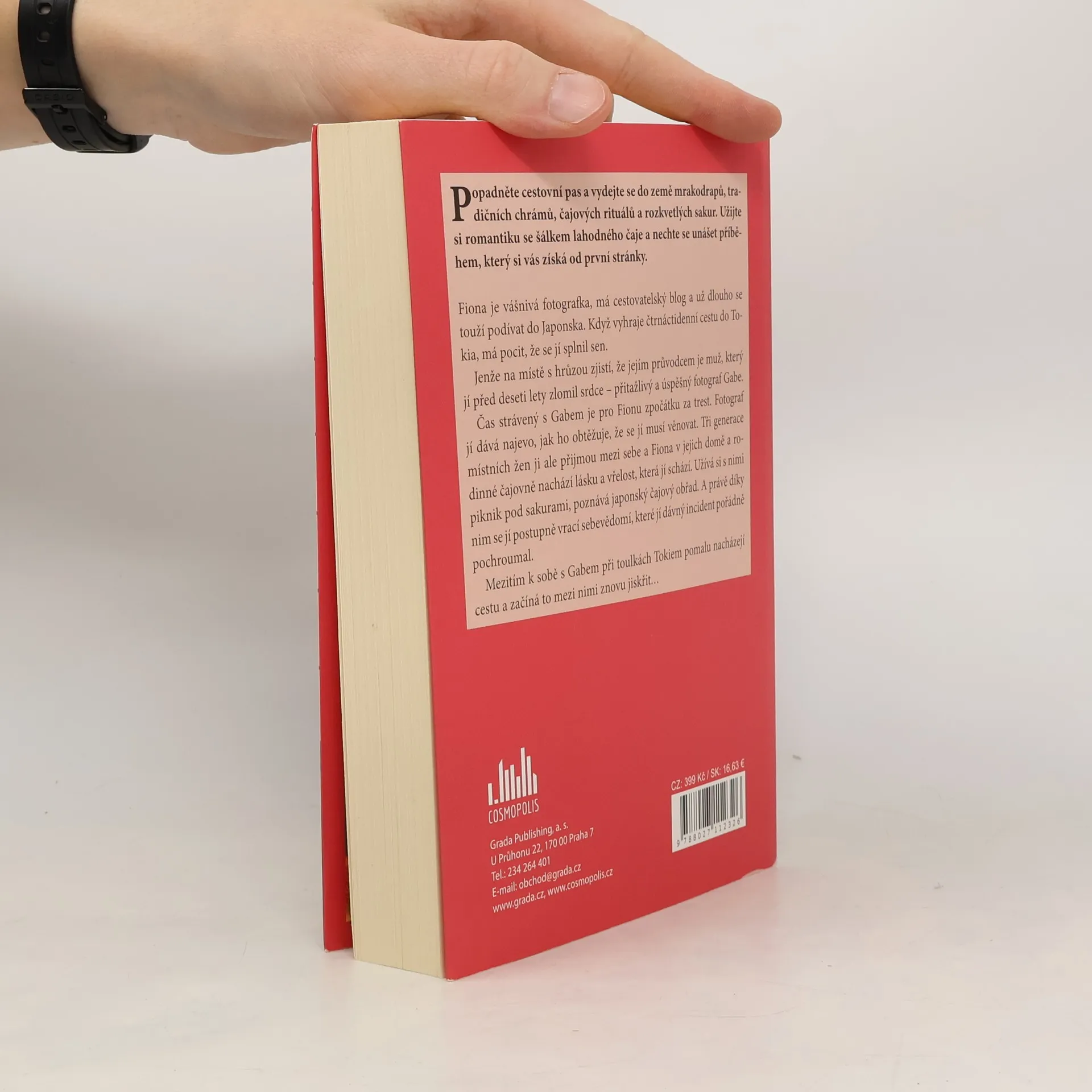 Popadněte cestovní pas a vydejte se do země mrakodrapů, tradičních chrámů, čajových rituálů a rozkvetlých sakur. Užijte si romantiku s šálkem lahodného čaje a nechte se unášet příběhem, který si vás získá od první stránky. Fiona je vášnivá fotografka, má cestovatelský blog a už dlouho se touží podívat do Japonska. Když vyhraje čtrnáctidenní cestu do Tokia, má pocit, že se jí splnil sen. Jenže na místě s hrůzou zjistí, že jejím průvodcem je muž, který jí před deseti lety zlomil srdce – přitažlivý a úspěšný fotograf Gabe. Čas strávený s Gabem je pro Fionu zpočátku za trest. Fotograf jí dává najevo, jak ho obtěžuje, že se jí musí věnovat. Tři generace místních žen ji ale přijmou mezi sebe a Fiona v jejich domě a rodinné čajovně nachází lásku a vřelost, která jí schází. Užívá si s nimi piknik pod sakurami, poznává pravý japonský čajový obřad. A právě díky nim se jí postupně vrací sebevědomí, které jí dávný incident pořádně pochroumal. Mezitím k sobě s Gabem při toulkách Tokiem pomalu nacházejí cestu a začíná to mezi nimi znovu jiskřit…