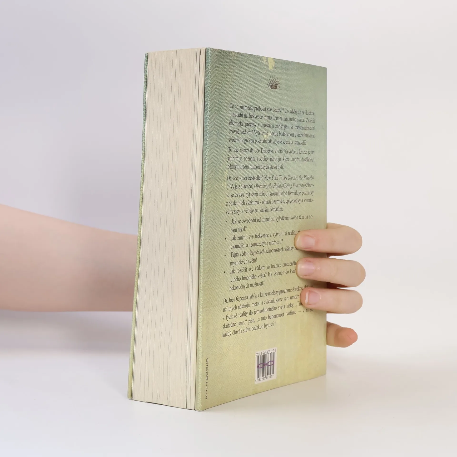Co to znamená, probudit své božství? Co kdybyste se dokázali naladit na frekvence mimo hranice hmotného světa? Změnit chemické procesy v mozku a zpřístupnit si transcendentální úrovně vědomí? Vytvořit si novou budoucnost a transformovat svou biologickou podstatu tak, abyste se zcela uzdravili? To vše nabízí dr. Joe Dispenza v této (r)evoluční knize: jejím jádrem je poznání a soubor nástrojů, které umožní dosáhnout běžným lidem mimořádných stavů bytí. Dr. Joe Dispenza autor bestsellerů You Are the Placebo (=Vy jste placebo) a Breaking the Habit of Being Yourself (=Zbavte se zvyku být sami sebou) v knize srozumitelně formuluje poznatky z posledních výzkumů z oblasti neurověd, epigenetiky a kvantové fyziky, a věnuje se i dalším tématům: • Jak se osvobodit od minulosti vyladěním svého těla na novou mysl? • Jak změnit své frekvence a vytvořit si realitu přítomného okamžiku a neomezených možností? • Tajná věda o báječných schopnostech šišinky: náš portál do mystických světů! • Jak rozšířit své vědomí za hranice omezeného, předvídatelného hmotného světa? Jak vstoupit do kvantového pole nekonečných možností? Autor nabízí ucelený program s širokou skálou účinných nástrojů, metod a cvičení, které vám umožní vykročit z fyzické reality do jemnohmotného světa lásky. „Tímto totiž skutečně jsme,“ píše, „a tuto budoucnost tvoříme — v ní se každý člověk stává božskou bytostí.“