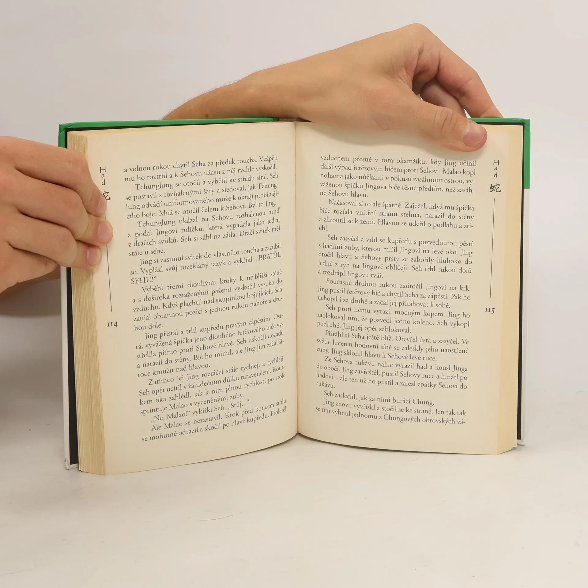 Legenda o pěti předcích stále žije! Další šaolinský klášter je zničen. Mladý mnich Seh, mistr hadího kung-fu, se připojuje k silné skupině zbojníků a společně odcestují hluboko do hor. V tajné zbojnické pevnosti se setkává se záhadnou a krásnou dívkou jménem Kobra. Vzrušující série pokračuje třetím dílem, v němž pět mladých mnichů dále pátrá po tajemstvích své minulosti i svého osudu. Kniha navazuje na knihy Opice a Tygr.
