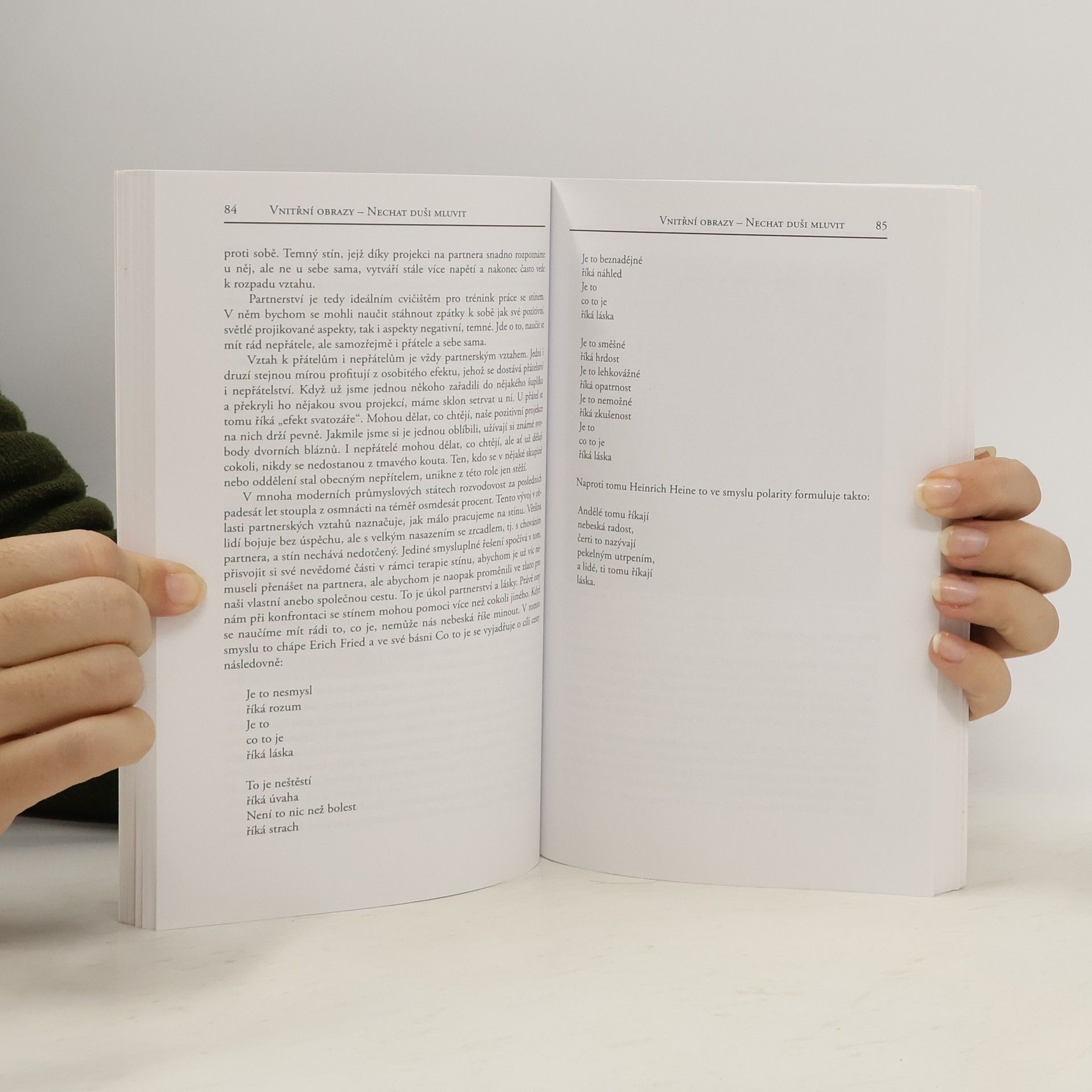 Podle učení C. G. Junga je stínem naše podvědomí. Je to ta osobnost, kterou bychom nejraději nebyli, ale kterou se nakonec stát musíme, když chceme být celiství. Náš stín, tedy naší „temnou stránku“, prociťujeme velmi ambivalentně: je nám odporná, ale zároveň nás fascinuje. Práce se stínem slouží tomu, abychom se stali vědomými a je tedy v pravém slova smyslu prací se světlem. Stín je vlastně naším pokladem, obohacuje nás tak, jako málo co jiného. Dahlke nám ukazuje, jak náš stín vypátrat a jak se s ním konfrontovat, abychom ho nakonec mohli přijmout, integrovat do své osobnosti a možná dokonce i začít milovat.