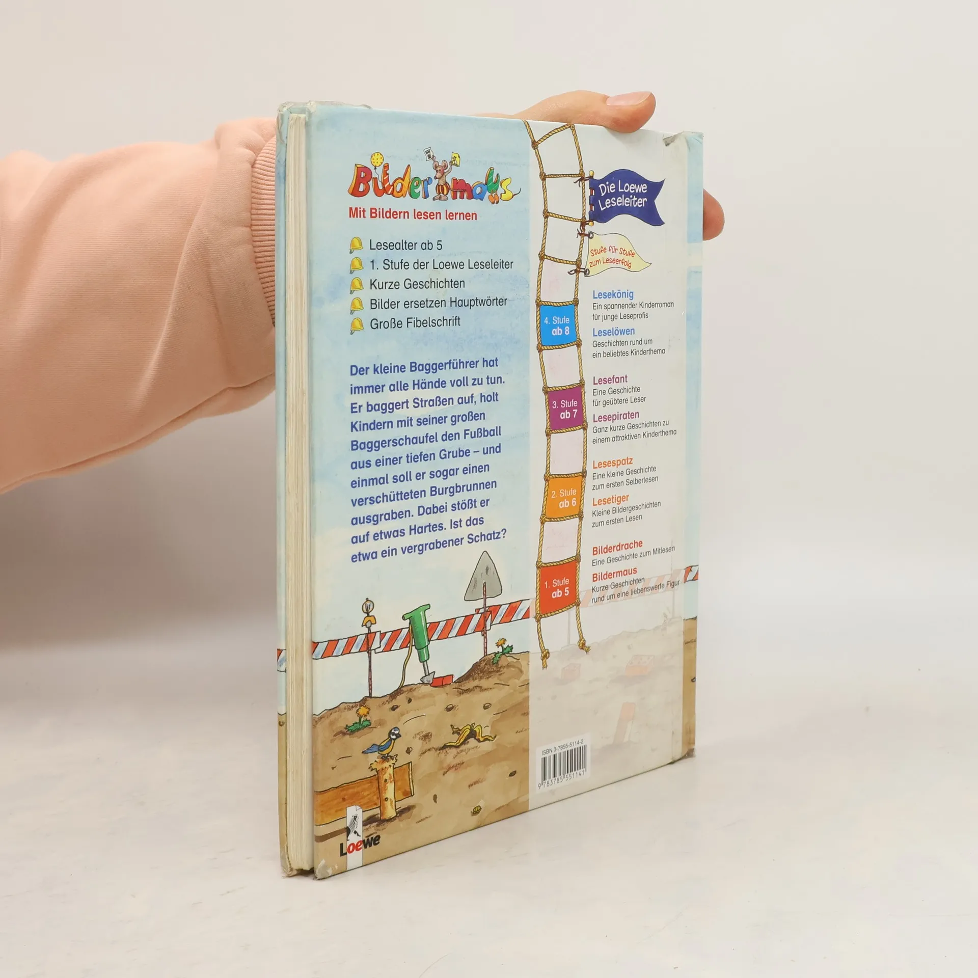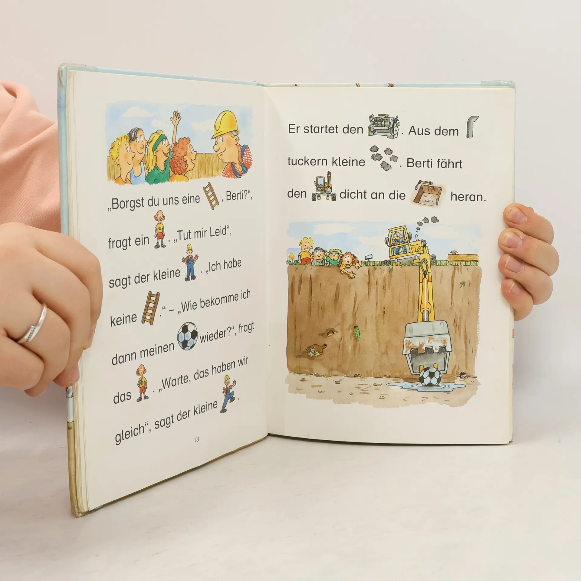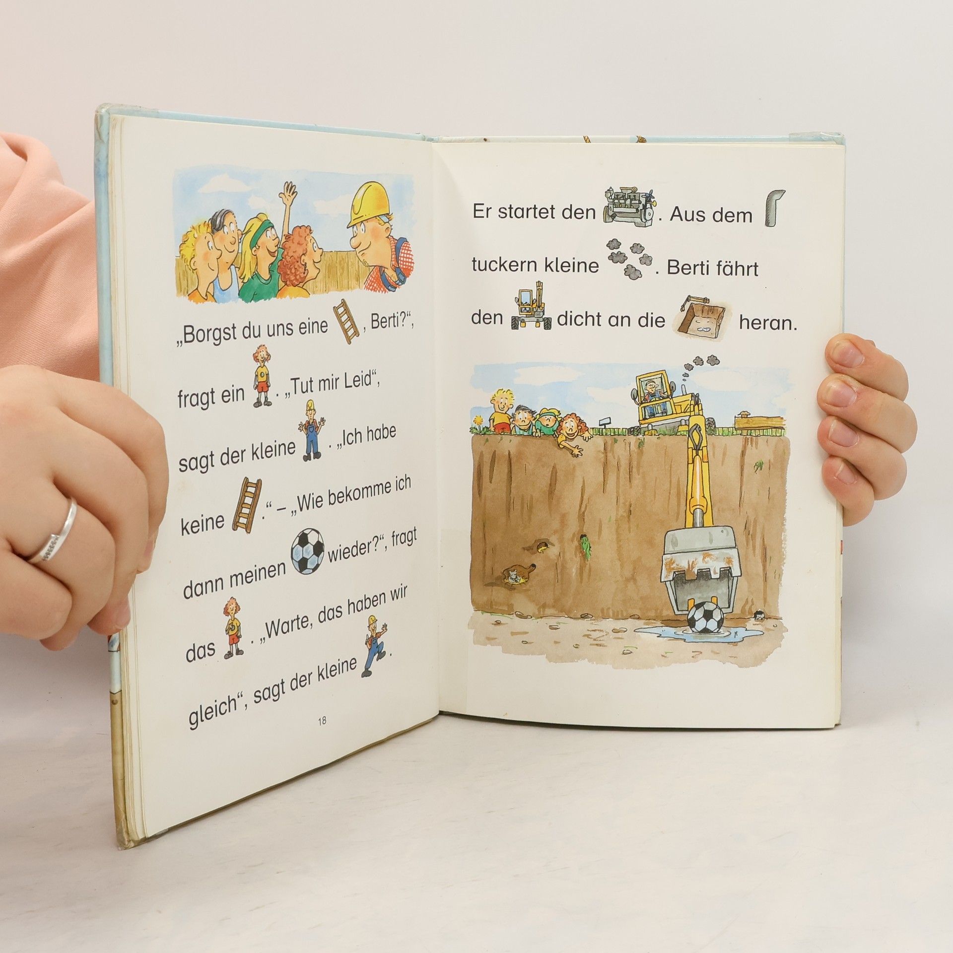 Der kleine Baggerführer hat immer alle Hände voll zu tun. Er baggert Straßen auf, holt Kindern mit seiner großen Baggerschaufel den Fußball aus der tiefen Grube - und einmal soll er sogar einen verschütteten Burgbrunnen ausgraben. Dabei stößt er auf etwas Hartes. Ist das etwa ein vergrabener Schatz?