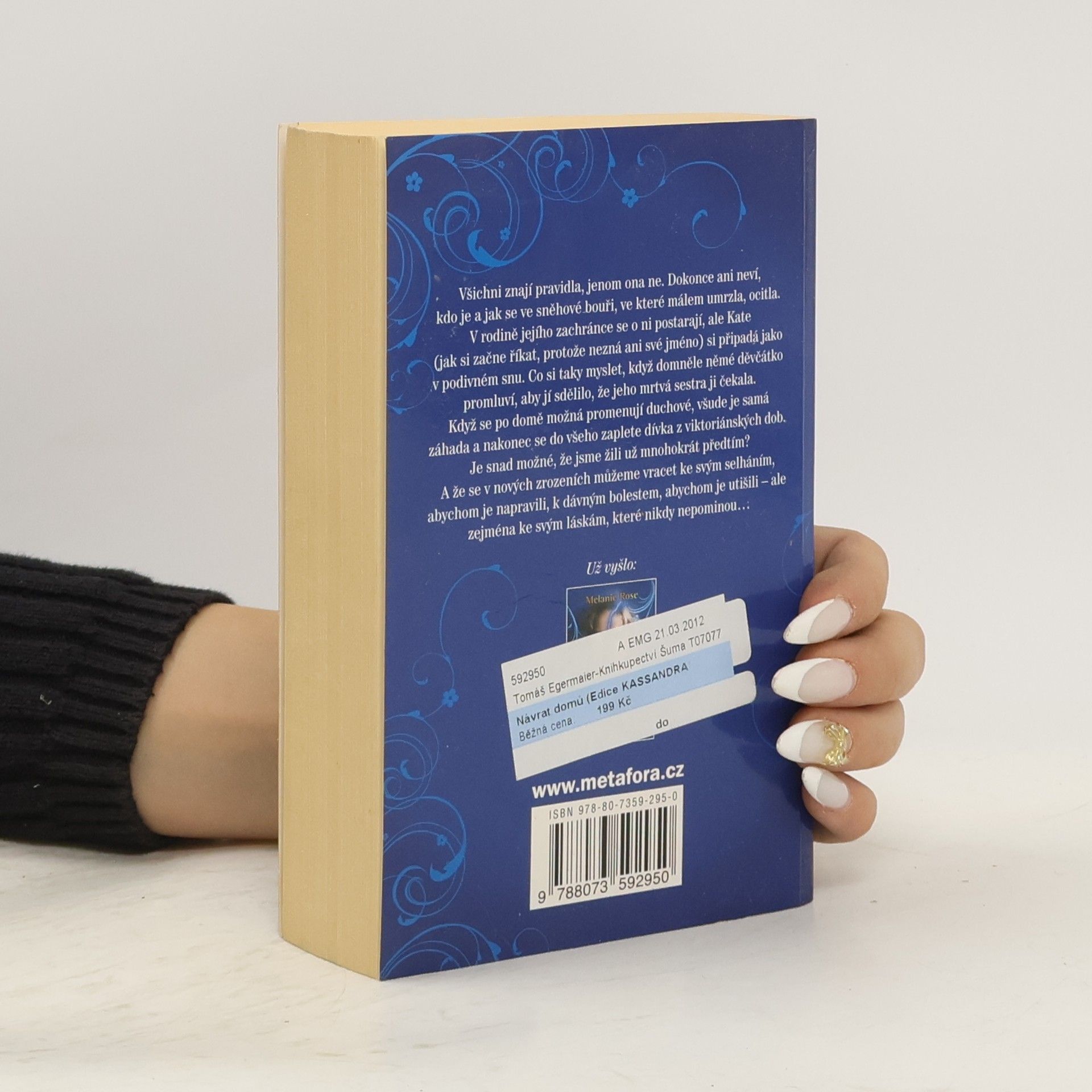Ztratila paměť, ale ví, že se děje něco podivného. Je snad láska opravdu věčná? Od autorky neobyčejného příběhu Má noc je tvůj den. Všichni znají pravidla, jenom ona ne. Dokonce ani neví, kdo je a jak se ve sněhové bouři, ve které málem umrzla, ocitla. V rodině jejího zachránce se o ni postarají, ale Kate (jak si začne říkat, protože nezná ani své jméno) si připadá jako v podivném snu. Co si taky myslet, když domněle němé děvčátko promluví, aby jí sdělilo, že jeho mrtvá sestra ji čekala? Když se po domě možná promenují duchové, všude je samá záhada a nakonec se do všeho zaplete dívka z viktoriánských dob. Je snad možné, že jsme žili už mnohokrát předtím? A že se v nových zrozeních můžeme vracet ke svým selháním, abychom je napravili, k dávným bolestem, abychom je utišili - ale zejména ke svým láskám, které nikdy nepominou…