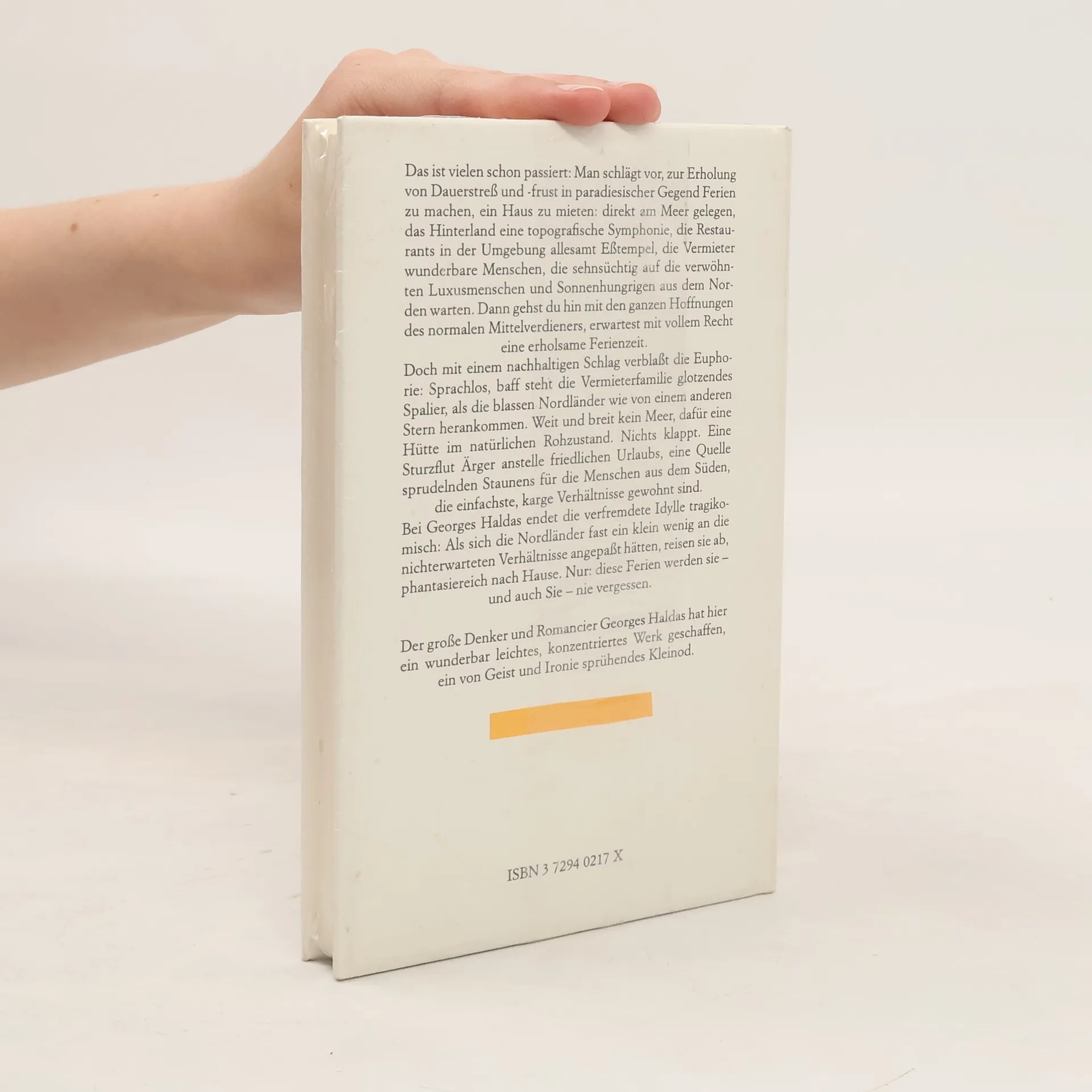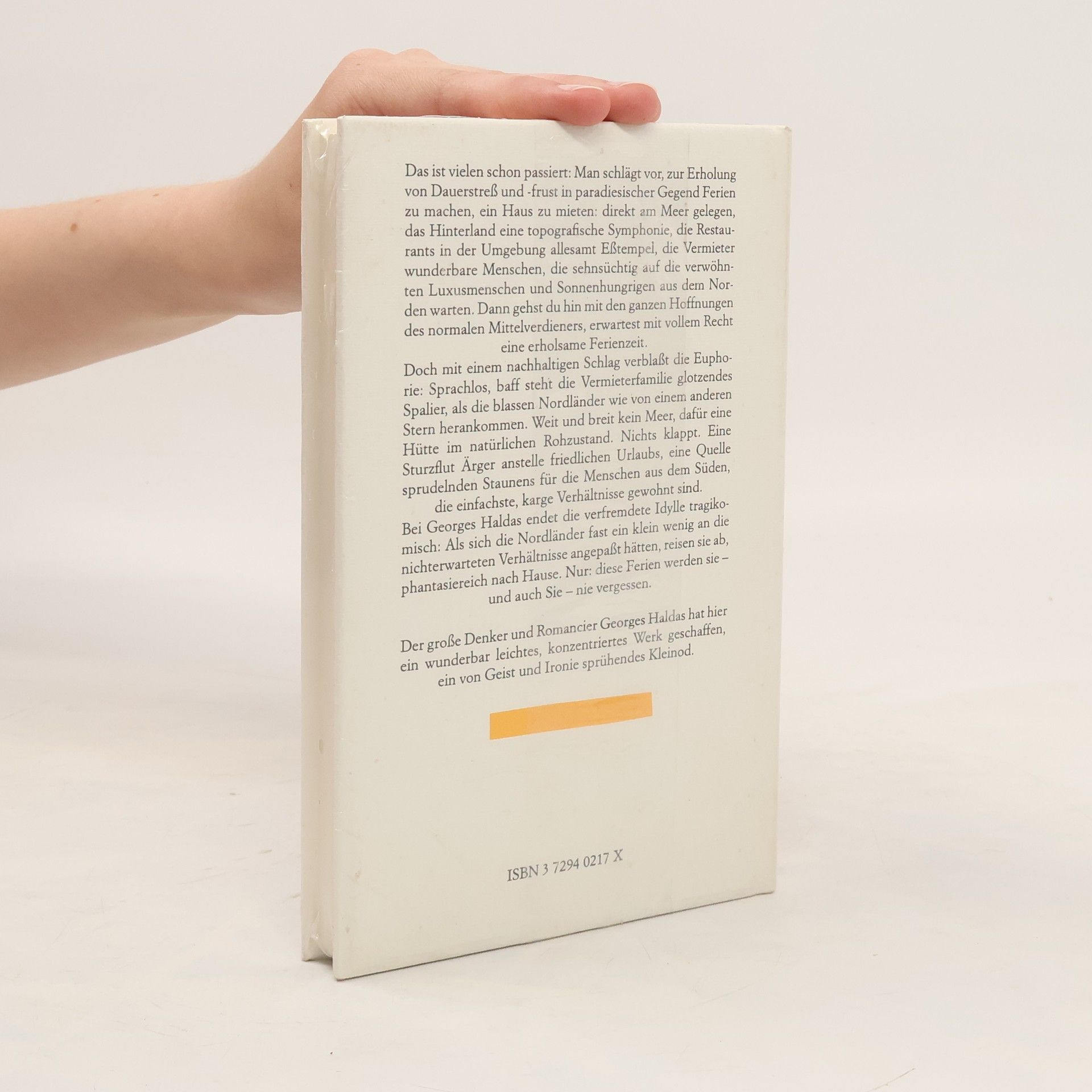 'Wir betraten also ein ganz vorläufiges Gebilde, was im vornherein den Ton bestimmte. Schon begann die Zusicherung unserer calabresischen Freundin einen merkwürdigen Sinn anzunehmen: ‹Ein ganz neues Landhaus›, hatte sie gesagt, ‹kaum fertiggeworden.› Kaum, tatsächlich! Aber es ist jetzt nicht der Moment, uns über so geringfügige Details auszulassen.' Der große Denker und Romancier Georges Haldas hat hier ein wunderbar leichtes, konzentriertes Werk geschaffen, ein von Geist und Ironie sprühendes Kleinod.