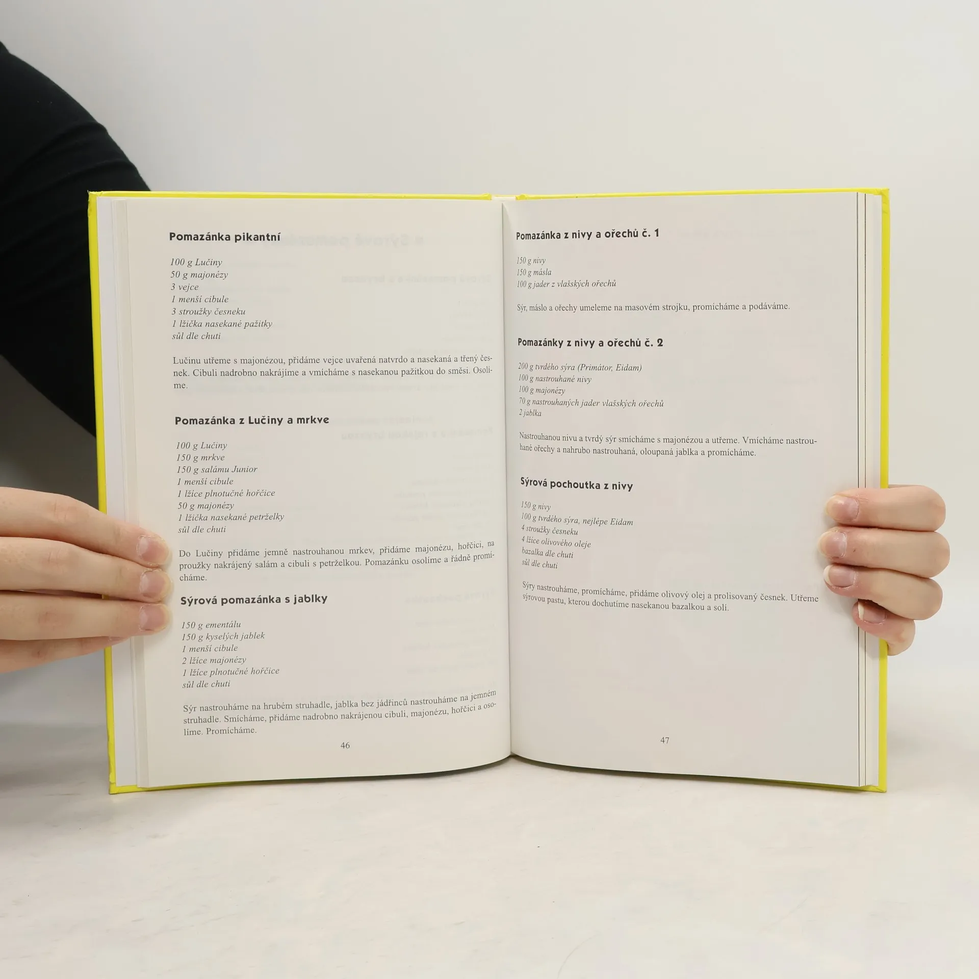 350 receptů. Pro lepší přehlednost jsou v této knize recepty rozděleny podle hlavního druhu použité suroviny na pomazánky masité, tvarohové, sýrové, z vajec, rybí a zeleninové. Závěrečná část receptů obsahuje pomazánky označené jako speciální, protože mají za základ různé druhy potravin - těstoviny, droždí, máslo, houby, exotické ovoce, kaštany či rozinky. V úvodu knihy je popsán pracovní postup, způsob konzumace i skladování pomazánek