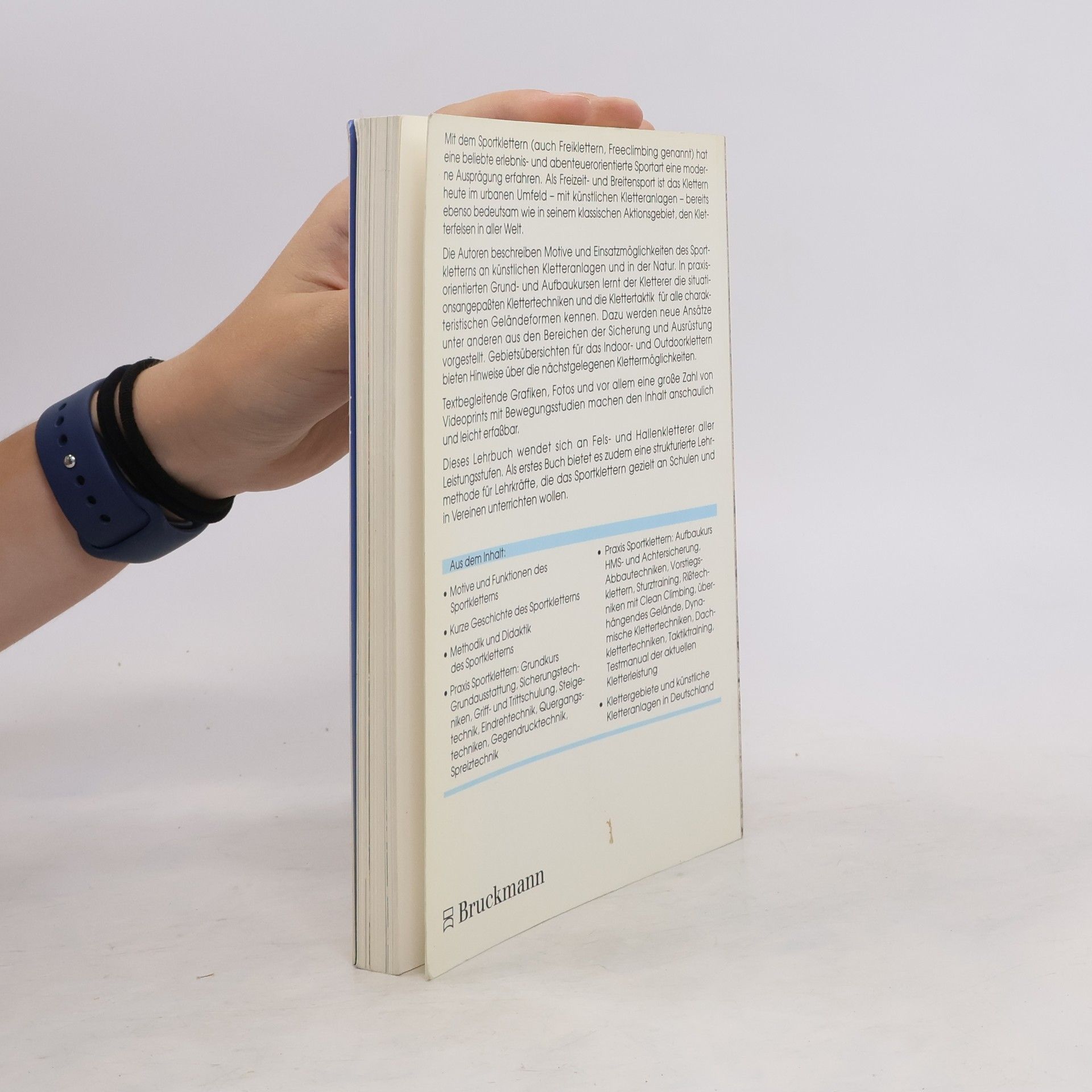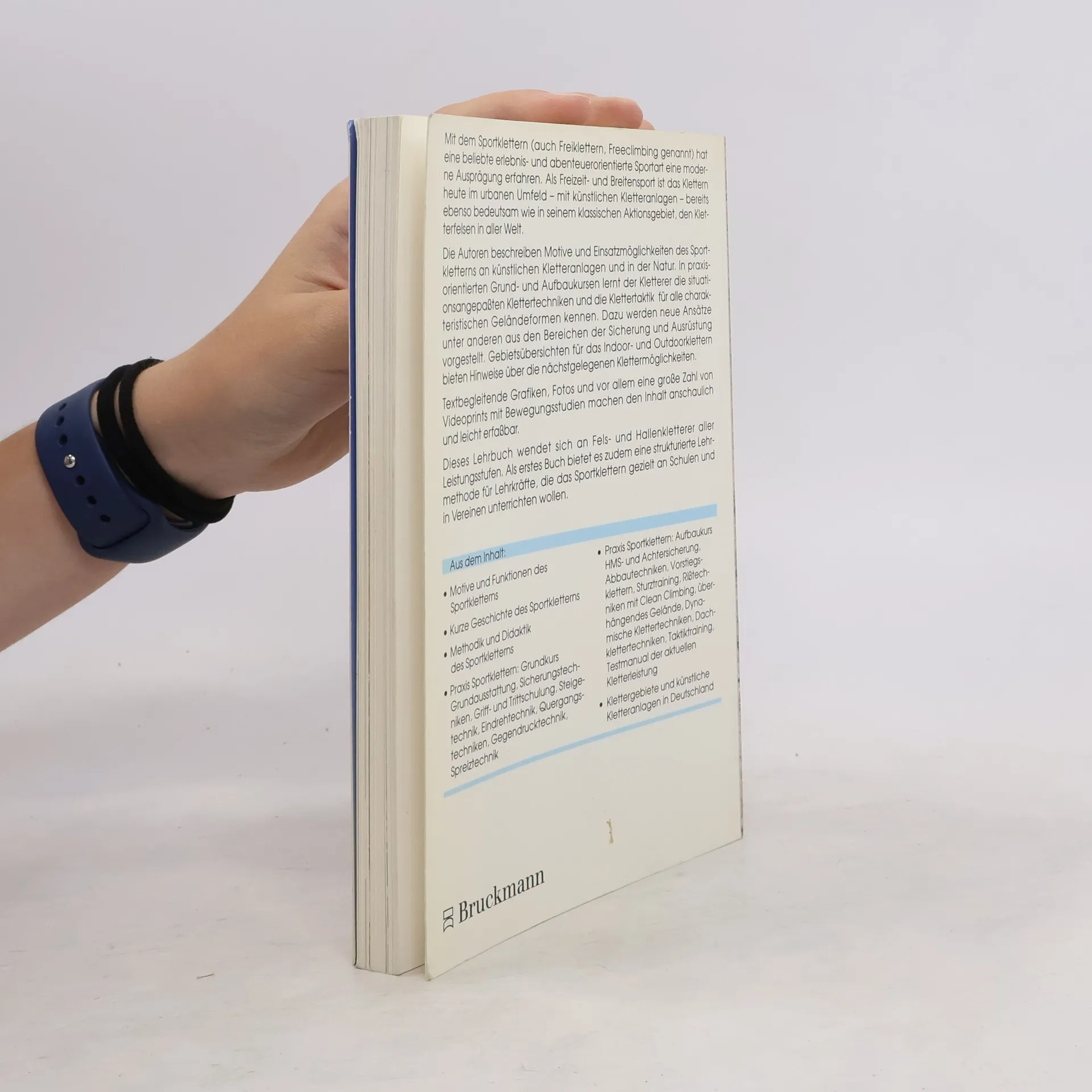 Sportklettern als Freizeit- und Leistungssport: Beginnend mit der Faszination, die das Sportklettern ausübt und die zur eigenen Ausübung führt, beschreiben zwei erfahrene Autoren sowohl das Grundwissen als auch die Praxis des Kletterns – Sicherung, Technik und Taktik – in didaktisch sinnvoll aufgebauten Einheiten. Ein anschauliches Lehrbuch für Anfänger und Fortgeschrittene sowie Lehrer und Trainer, die das Sportklettern als Erlebnissport unterrichten.