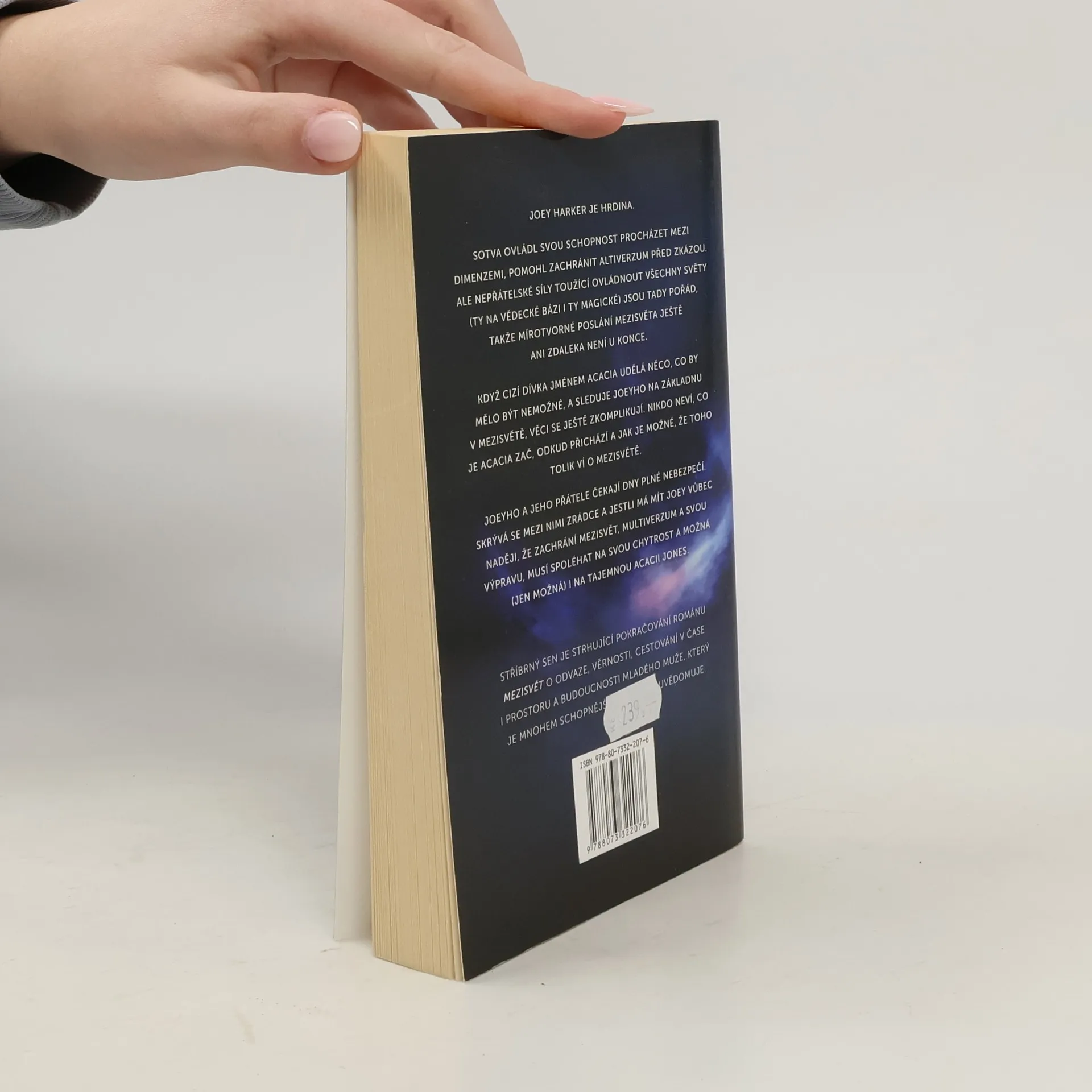 Joey Harker je hrdina. Sotva ovládl svou schopnost procházet mezi dimenzemi, pomohl zachránit Altiverzum před zkázou. Ale nepřátelské síly toužící ovládnout všechny světy – ty na vědecké bázi i ty magické – jsou tady pořád, takže mírotvorné poslání Mezisvětu ještě ani zdaleka není u konce. Když cizí dívka jménem Acacia udělá něco, co by mělo být nemožné, a sleduje Joeyho do základny v Mezisvětě, věci se ještě zkomplikují. Nikdo neví, co je Acacia zač, odkud přichází a jak je možné, že toho tolik ví o Mezisvětě. Joey a jeho přátele čekají dny plné nebezpečí. Skrývá se mezi nimi zrádce a jestli má mít Joey vůbec naději, že zachrání Mezisvět, multiverzum a svou výpravu, musí spoléhat na svou chytrost a možná – jen možná – i na tajemnou Acacii Jones. Stříbrnný sen je strhující pokračování románu Mezisvět o odvaze, věrnosti, cestování v čase i prostoru a budoucnosti mladého muže, který je mnohem schopnější, než si sám uvědomuje.