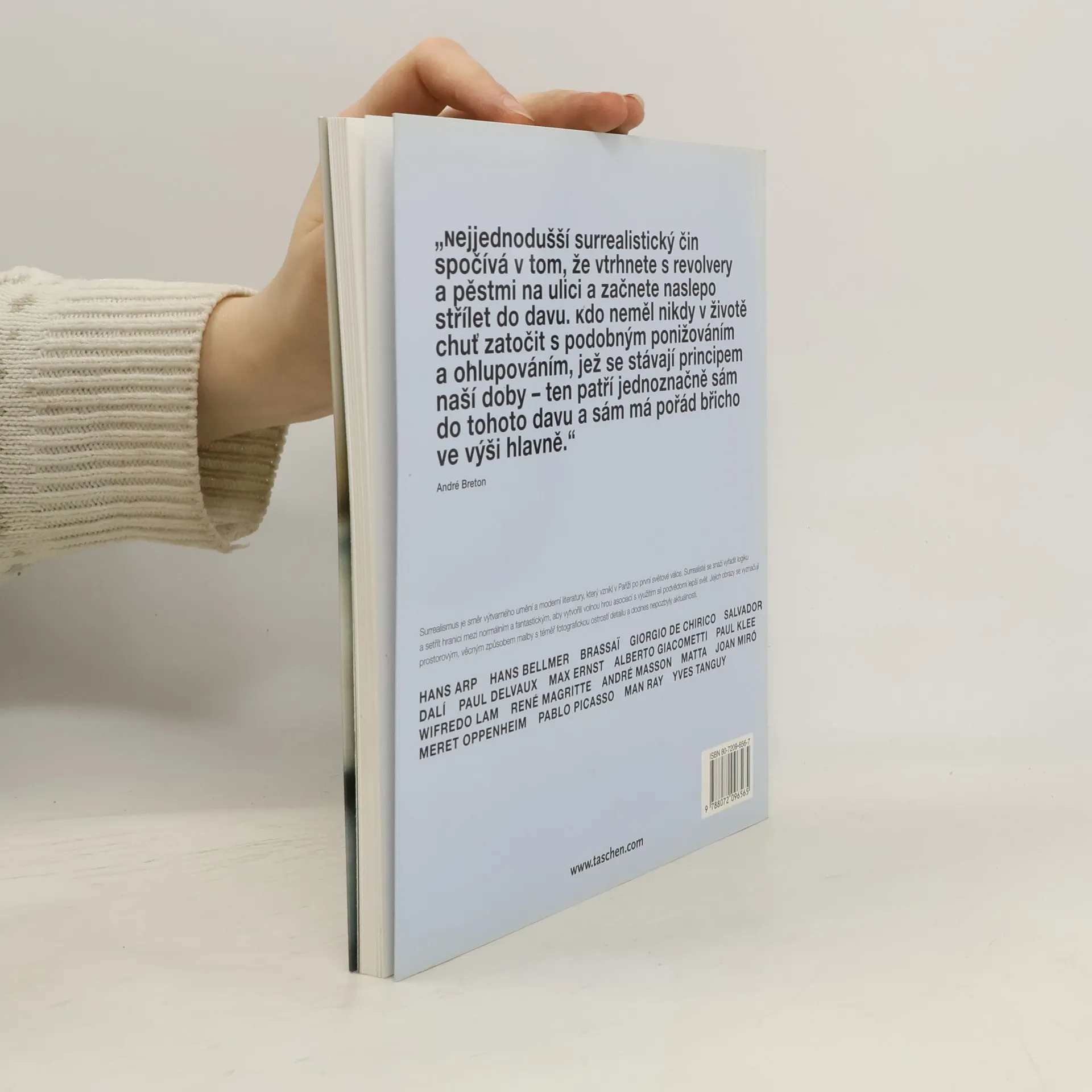 Kniha Surrealismus po úvodním eseji sestává z představení konkrétních výtvarných děl, řazených abecedně podle příjmení tvůrce. Surrealismus je směr výtvarného umění a moderní literatury, který vznikl v Paříži po první světové válce. Surrealisté se snaží vyřadit logiku a setřít hranice mezi normálním a fantastickým, aby vytvořili volnou hrou asociací s využitím sil podvědomí lepší svět. Jejich obrazy se vyznačují prostorovým, věcným způsobem malby s téměř fotografickou ostrostí detailu a dodnes nepozbyly aktuálnosti.