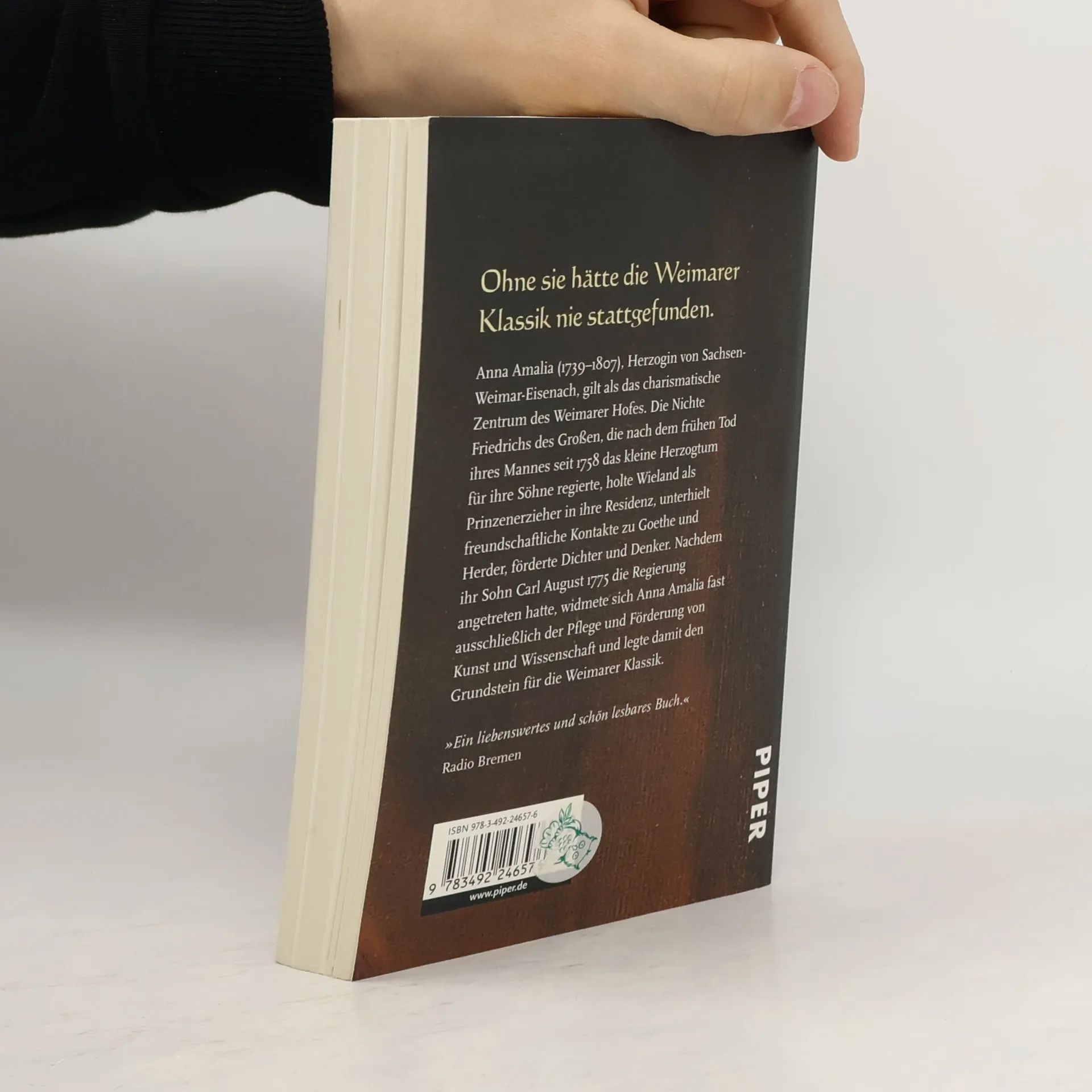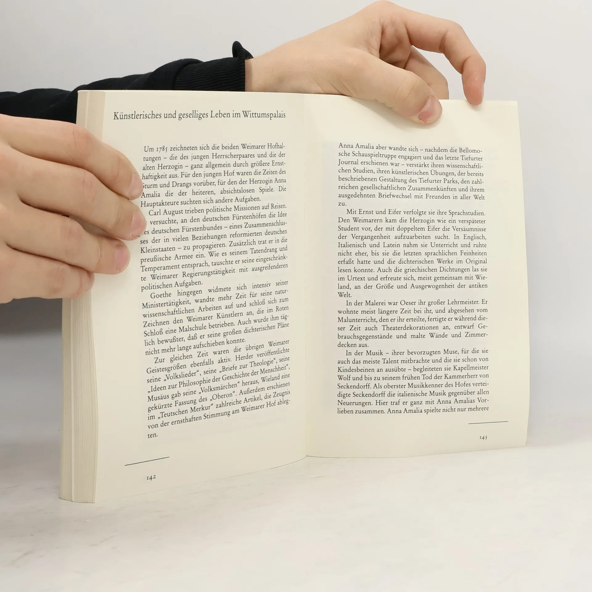 Anna Amalia (1739–1807), Herzogin von Sachsen-Weimar-Eisenach, gilt als das charismatische Zentrum des Weimarer Hofes. Die Nichte König Friedrichs des Großen, die nach dem frühen Tod ihres Mannes seit 1758 das kleine Herzogtum für ihre Söhne regierte, holte Christoph Martin Wieland als Prinzenerzieher in ihre Residenz, unterhielt freundschaftliche Kontakte zu Johann Wolfgang von Goethe und Johann Gottfried von Herder, förderte Dichter und Denker. Nachdem ihr Sohn Karl August 1775 die Regierung angetreten hatte, widmete sich Anna Amalia fast ausschließlich der Pflege und Förderung von Kunst und Wissenschaft und legte damit den Grundstein für die Weimarer Klassik.