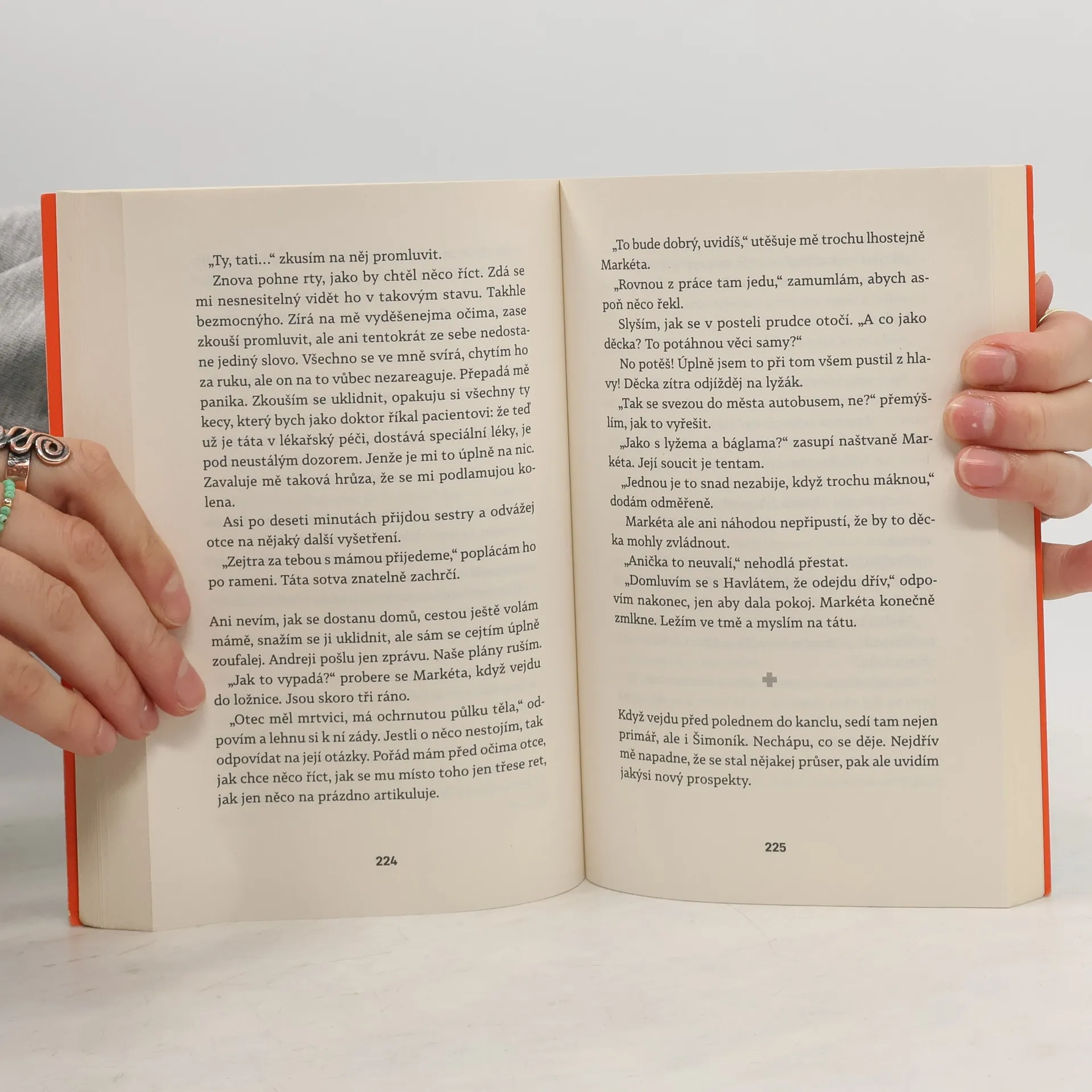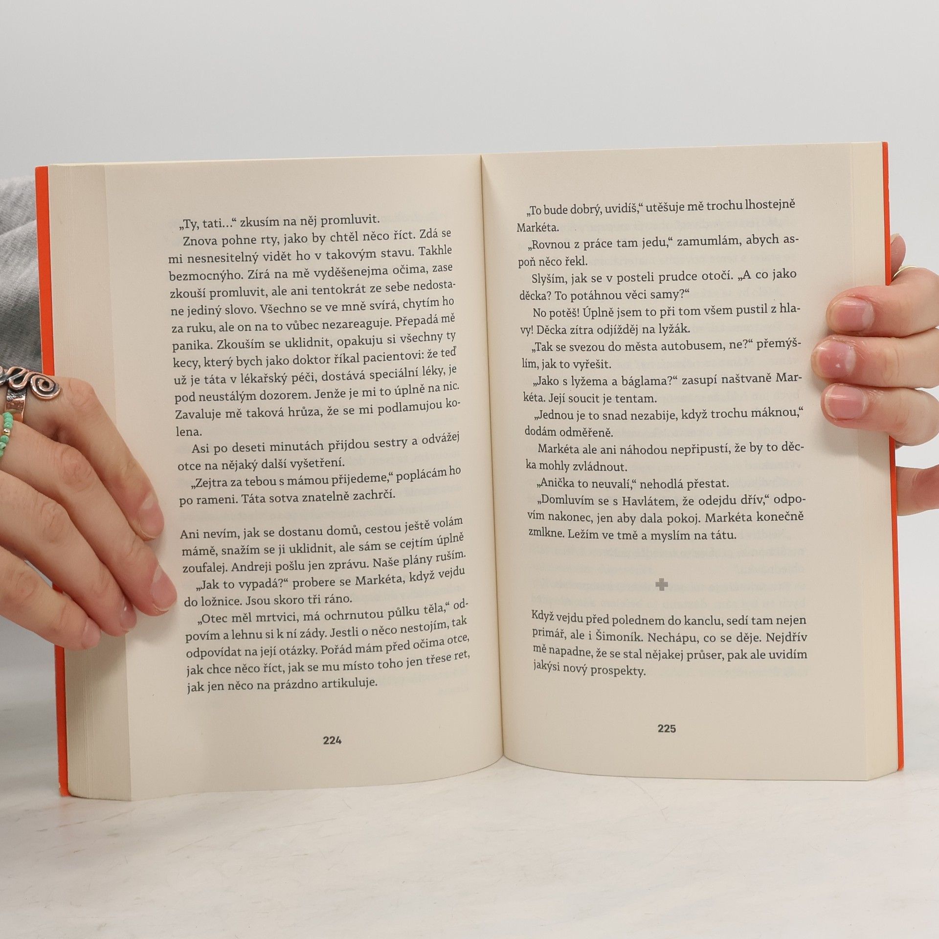 Před sebou neutečeš! „Nedokážu být ani rovnej, ani křivej. Můj život se rozlomil vejpůl a já už nečekám žádný pevný lano, který mě bude jistit,“ přemítá MUDr. Hynek Grábl, chirurg v příhraniční nemocnici, který už ani nedoufá, že by se jeho život ještě někdy mohl vyvíjet příznivěji. Kariéra špičkového odborníka na pražské klinice předčasně skončila kvůli jednomu karambolu s alkoholem a následky teď musí nést nejen on, ale i jeho věčně nespokojená žena a dospívající děti. Životní ani finanční účetnictví nevykazují příznivou bilanci a na horizontu zítřka se objevují všechny symptomy krize středního věku. Gráblova snaha nalézt východisko se však podobá spíš jízdě na horské dráze a často končí kocovinou. Pomůže mu milovaná profese, milenka nebo nová šance vrátit se k zajímavé operativě a kariérně růst? Na operačním sále i mimo něj se občas dá jen těžko poznat, kdo jakou hru hraje, kdo je vítěz a kdo poražený a kam povede další cesta. Hynkovi G. často nezbývá než věřit, že se nepotopí na úplné dno.