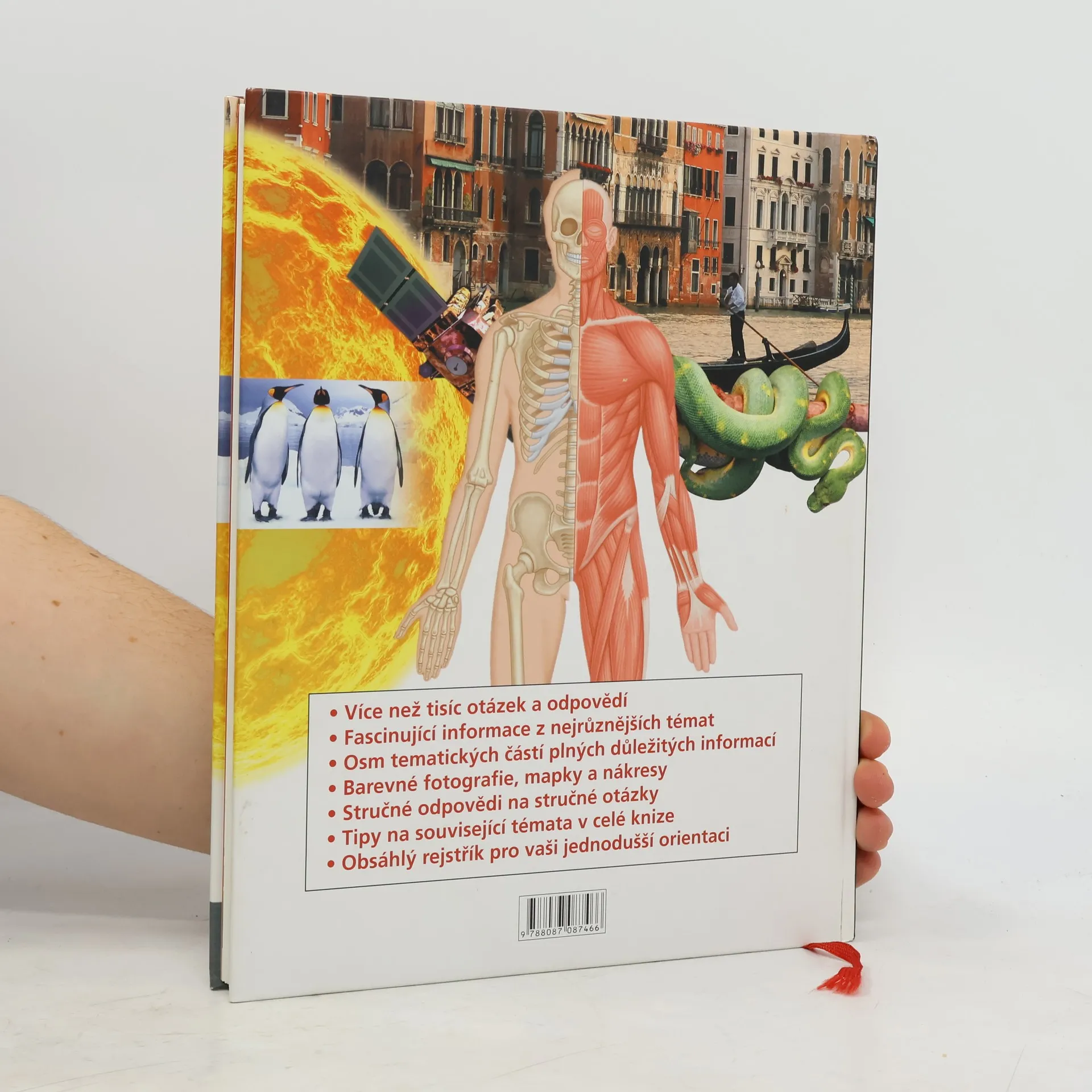 Publikace velkého formátu je vlastně encyklopedií, v níž jsou formou otázek a odpovědí zpracovány nejrůznější tematické okruhy počínaje vesmírem a jednotlivými planetami, přes počasí, podnebí, sopečnou činnost, jednotlivé kontinenty, zvířata, rostliny, starověké civilizace, umění, architekturu až po nejmodernější technologie, druhy dopravy, některé fyzikální jevy či základy obecné historie. Ve stovce atraktivních témat každý čtenář jistě objeví fakta, která dosud neznal, potěší se vtipným výběrem otázek a pobaví ho způsob, jakým jsou zpracovány odpovědi.