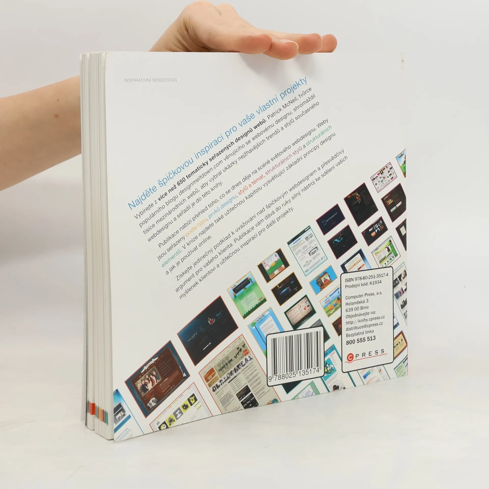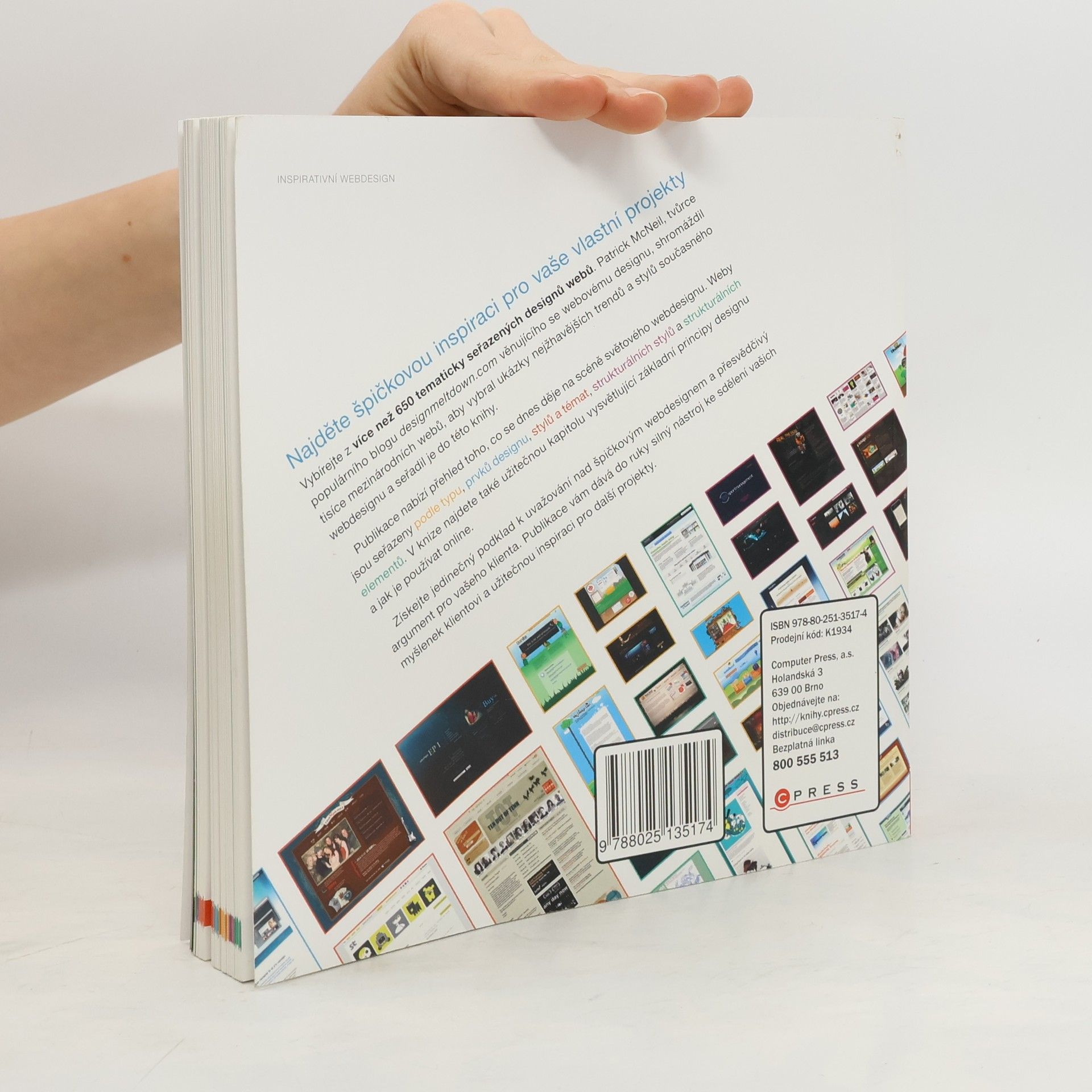 Najděte špičkovou inspiraci pro vaše vlastní projekty! Vybírejte z více než 650 tematicky seřazených designů webů. Publikace nabízí přehled toho, co se dnes děje na scéně světového webdesignu. Weby jsou seřazeny podle typu, prvků designu, stylů a témat, strukturálních stylů a strukturálních elementů. V knize najdete také užitečnou kapitolu vysvětlující základní principy designu a jak je používat online. (průvodce nejlepšími tématy, trendy a styly)