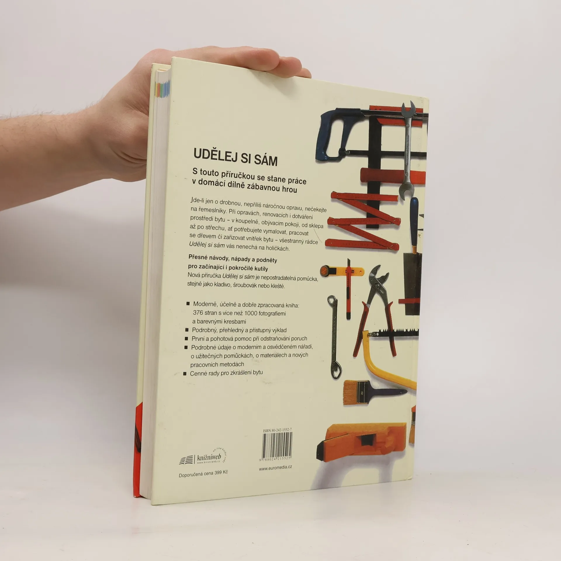 Podrobné postupy pracovních postupů ? Nářadí nástroje a přístroje ? Téměř 2000 barevných fotografií a kreseb Jedinečný pomocník do domácnosti, který bude vždy pohotově při ruce, poskytne první pomoc při běžných opravách a nejednu cennou radu. Vždycky je nepříjemné mít doma kapající kohoutek či topení, netěsnící okno, rozklíženou židlí nebo trhliny v omítce. S tímto rádcem máte šanci se takových problémů zbavit. Pak se můžete s klidem pustit i do složitějších řemesel, jako je tapetování, lakování, obkládání stěn a práce se dřevem nebo kovem. Naše příručka, která obsahuje 2000 fotografií, rad a návodů, vás ani v těchto případech nezklame. A věřte, že úpravy, které si ve svém bytě, domě či zahradě provedete sami, vám přinesou radost a pocit uspokojení. Váz., 376 stran, 20,4 x 27,7 cm, celobarevná publikace